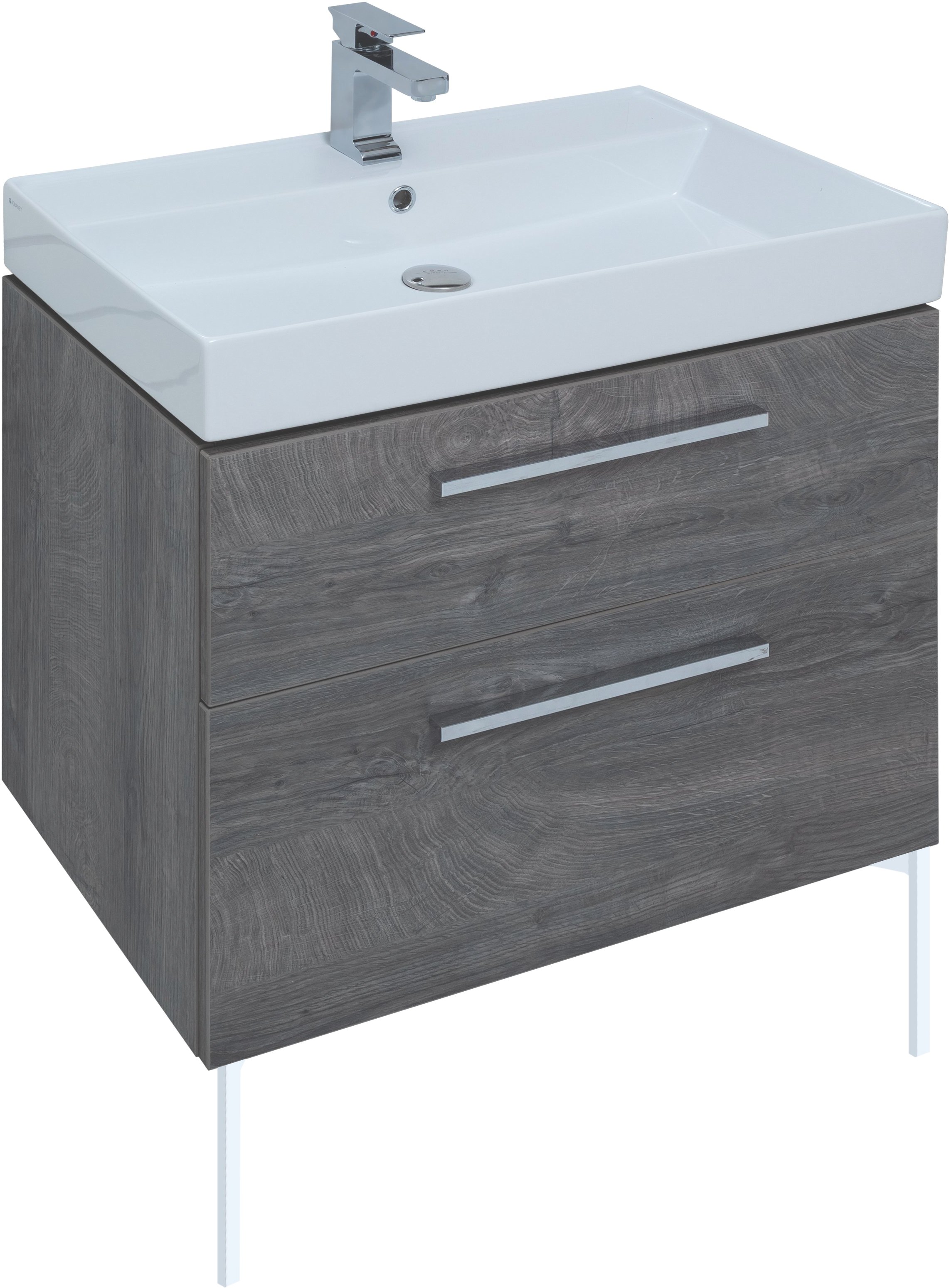 Тумба с раковиной Aquanet Nova 75 дуб рошелье, ручки матовый хром, ножки белые