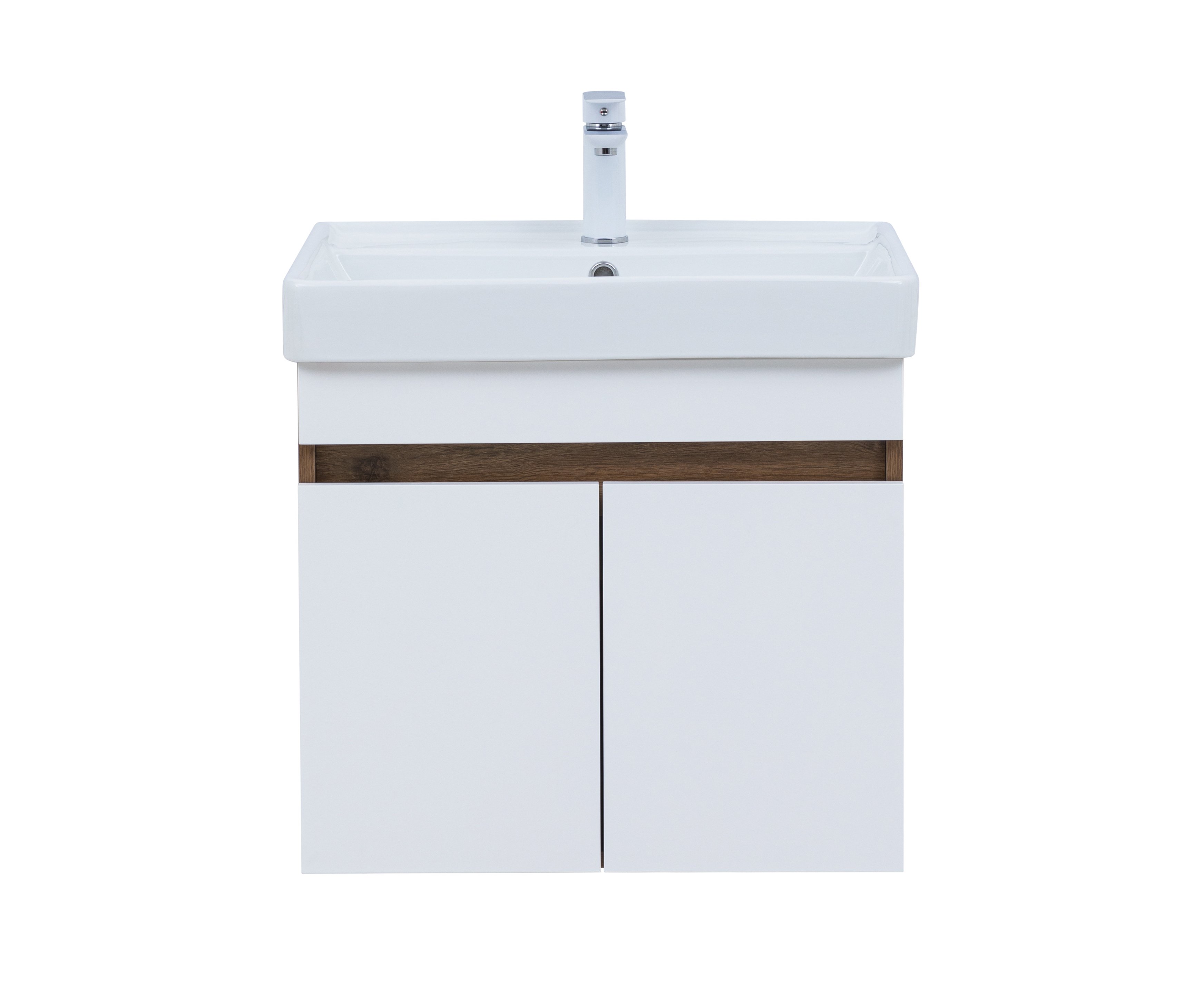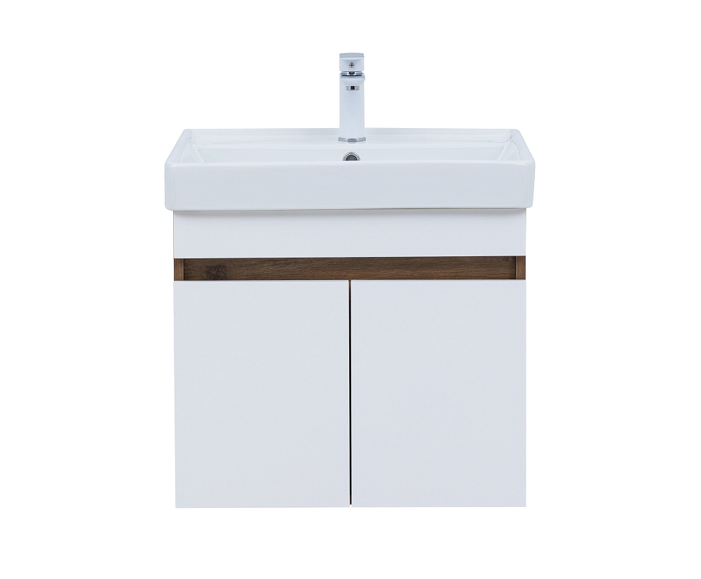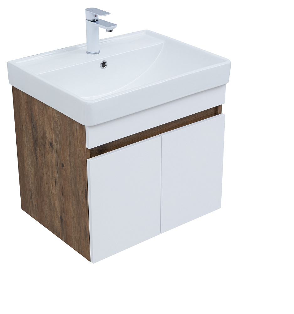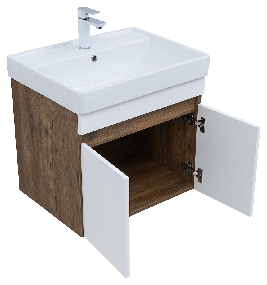 Тумба с раковиной Aquanet Оптима 60 подвесная, дуб рустикальный, белый сатин