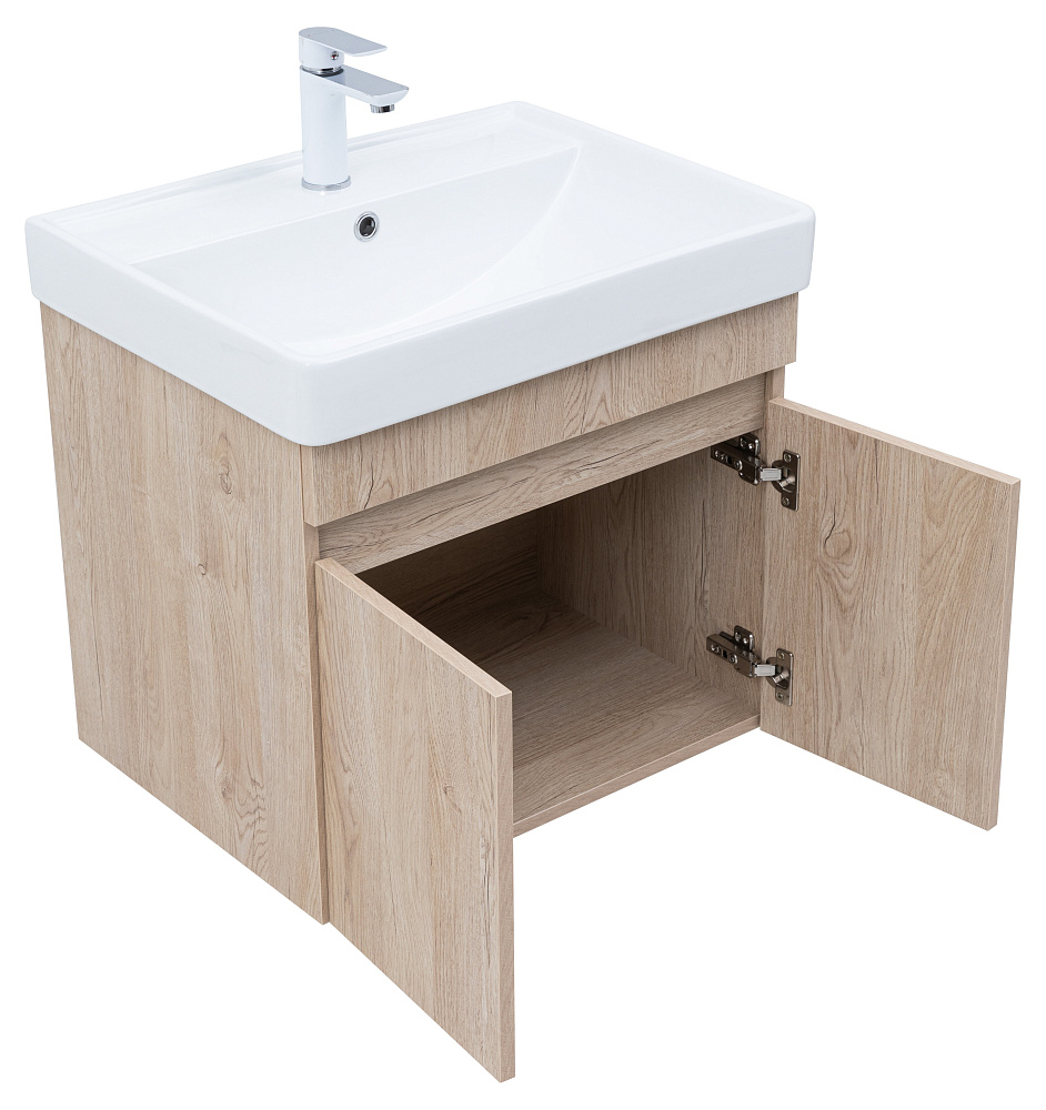 Тумба с раковиной Aquanet Оптима 60 подвесная, дуб светлый