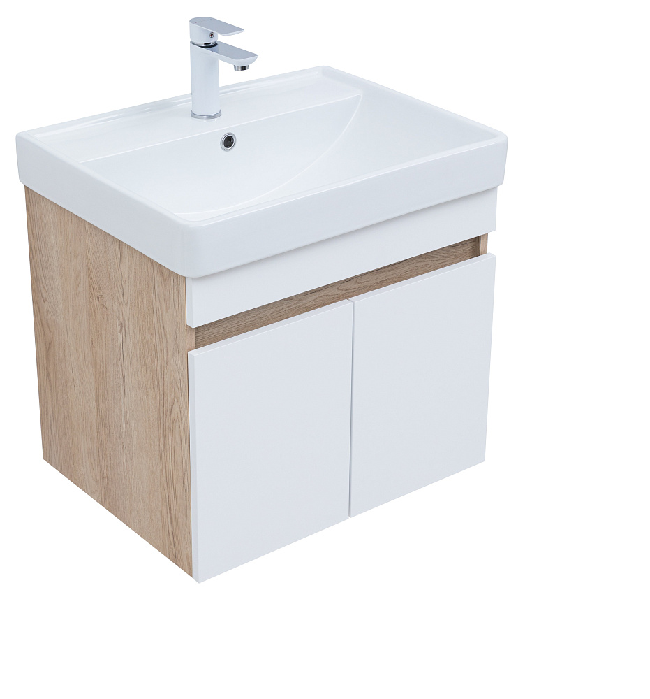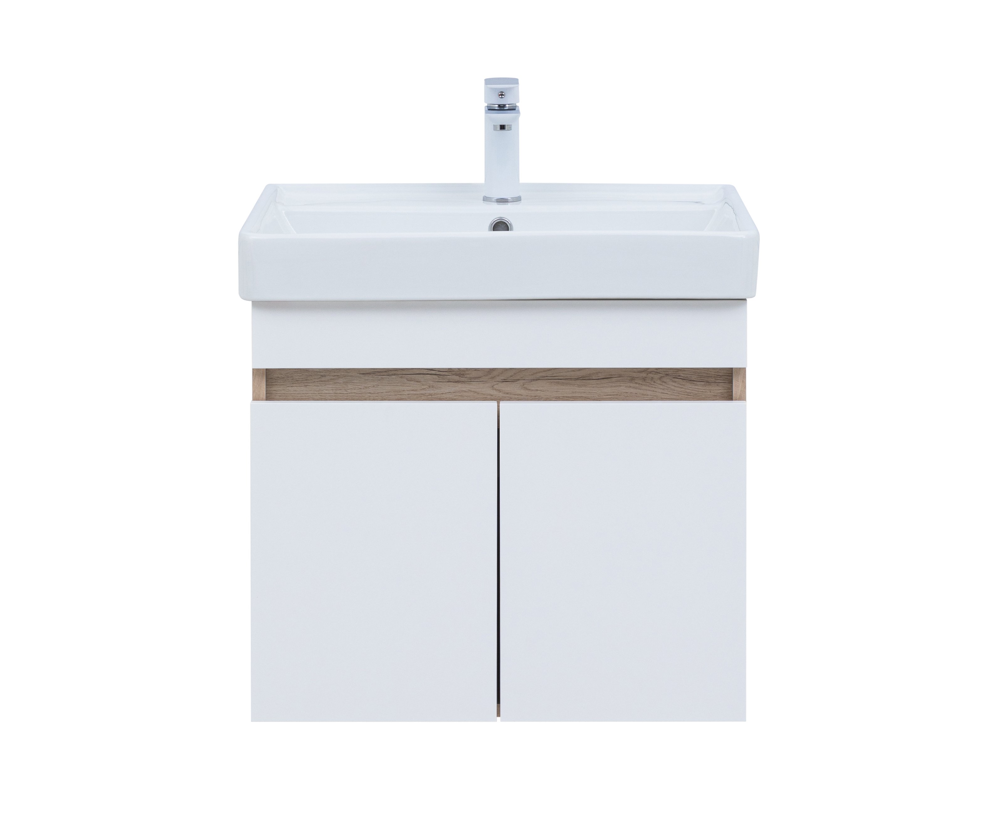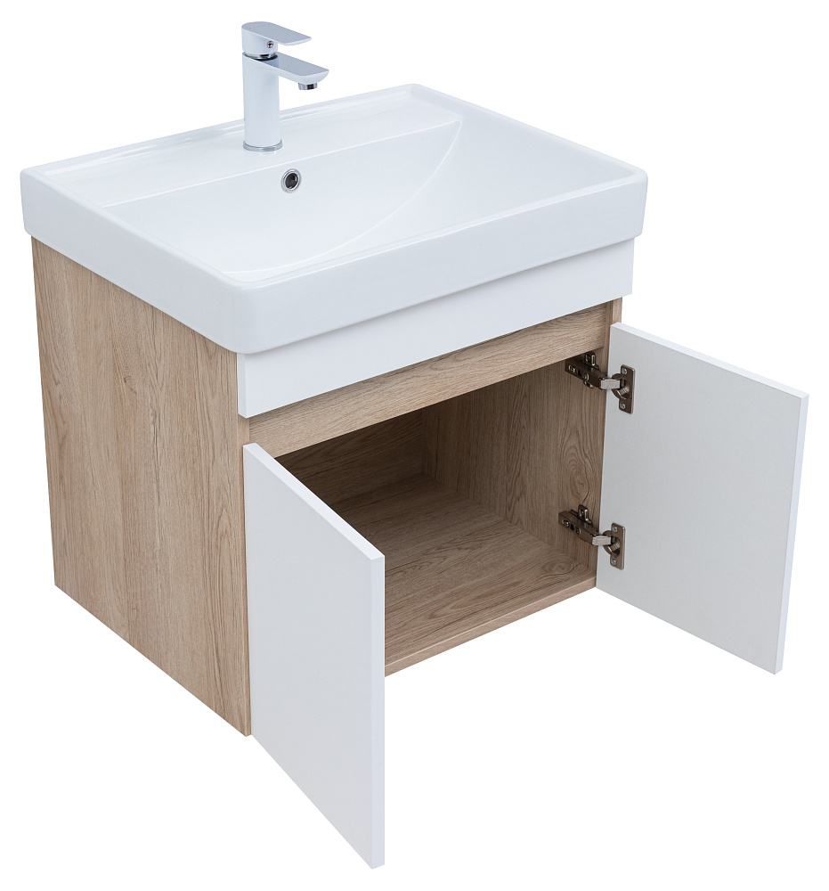 Тумба с раковиной Aquanet Оптима 60 подвесная, дуб светлый, белый сатин