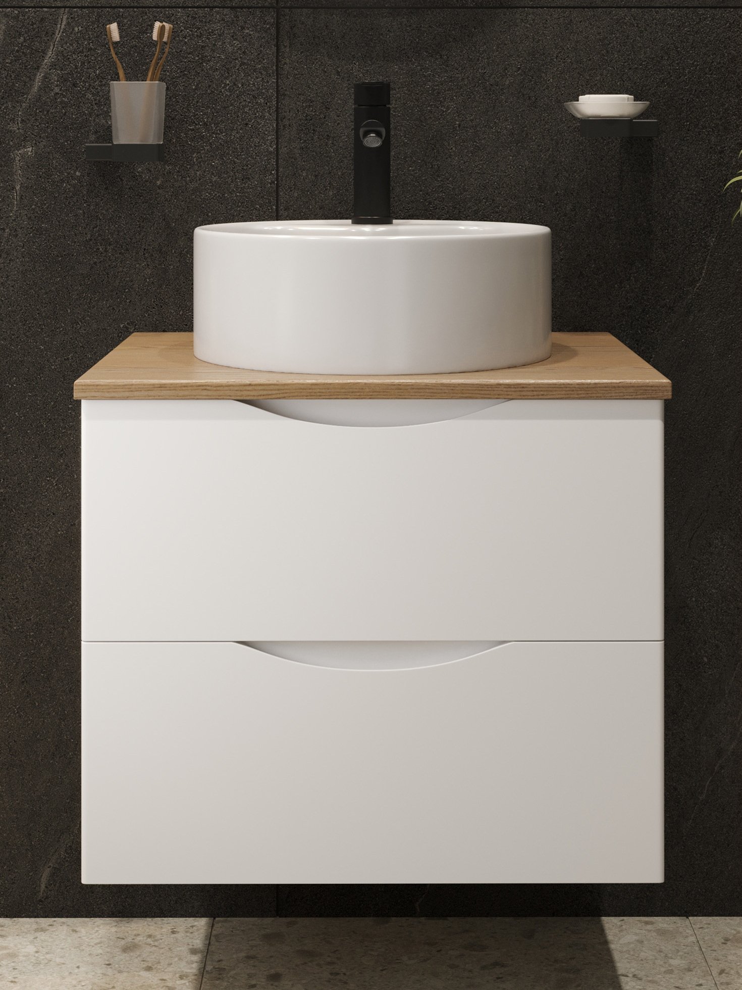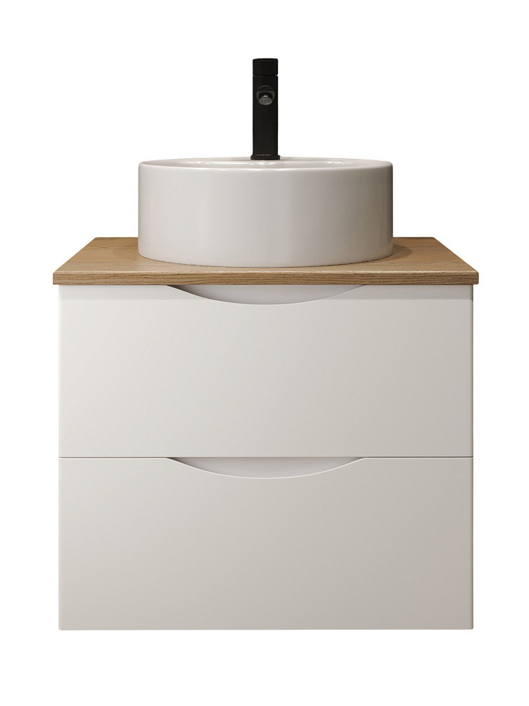 Тумба с раковиной BOND Куб 60 подвесная, матовая белая, под дерево, раковина Circle S03-410