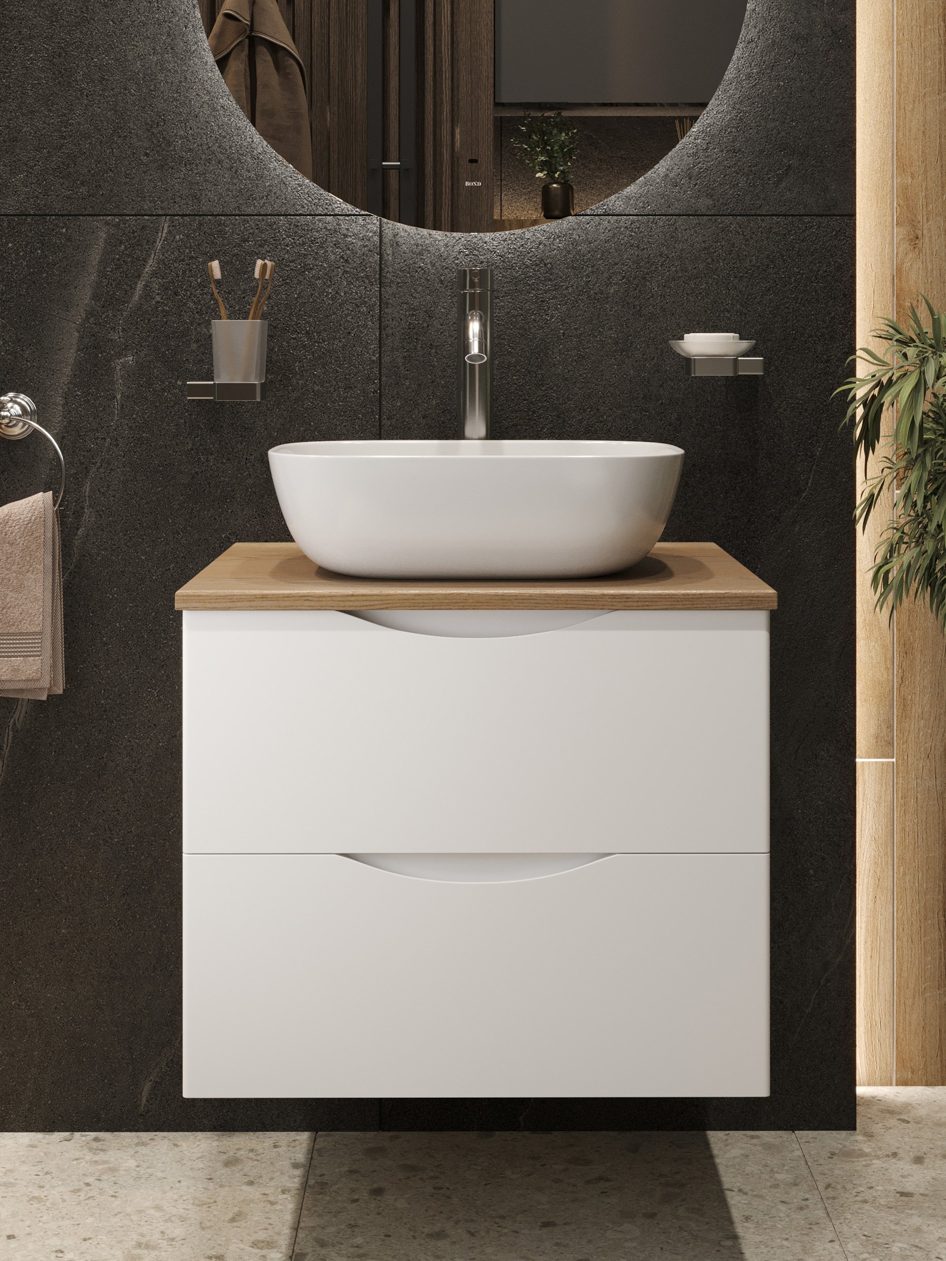 Тумба с раковиной BOND Куб 60 подвесная, матовая белая, под дерево, раковина Cube S54-450