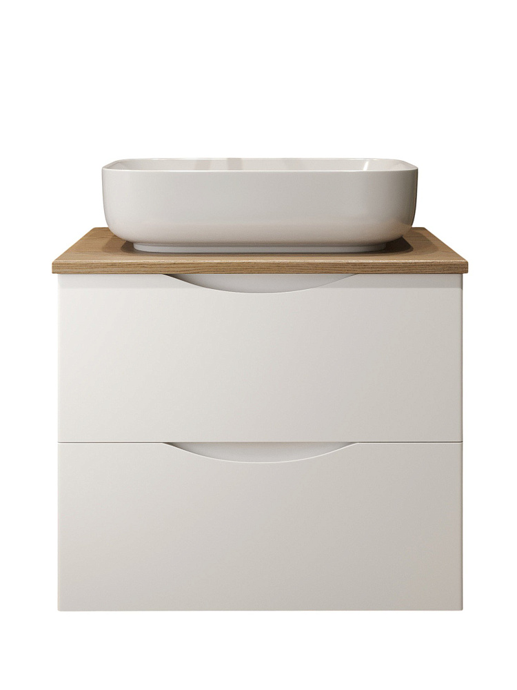 Тумба с раковиной BOND Куб 60 подвесная, матовая белая, под дерево, раковина Cube S54-500