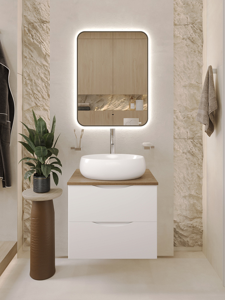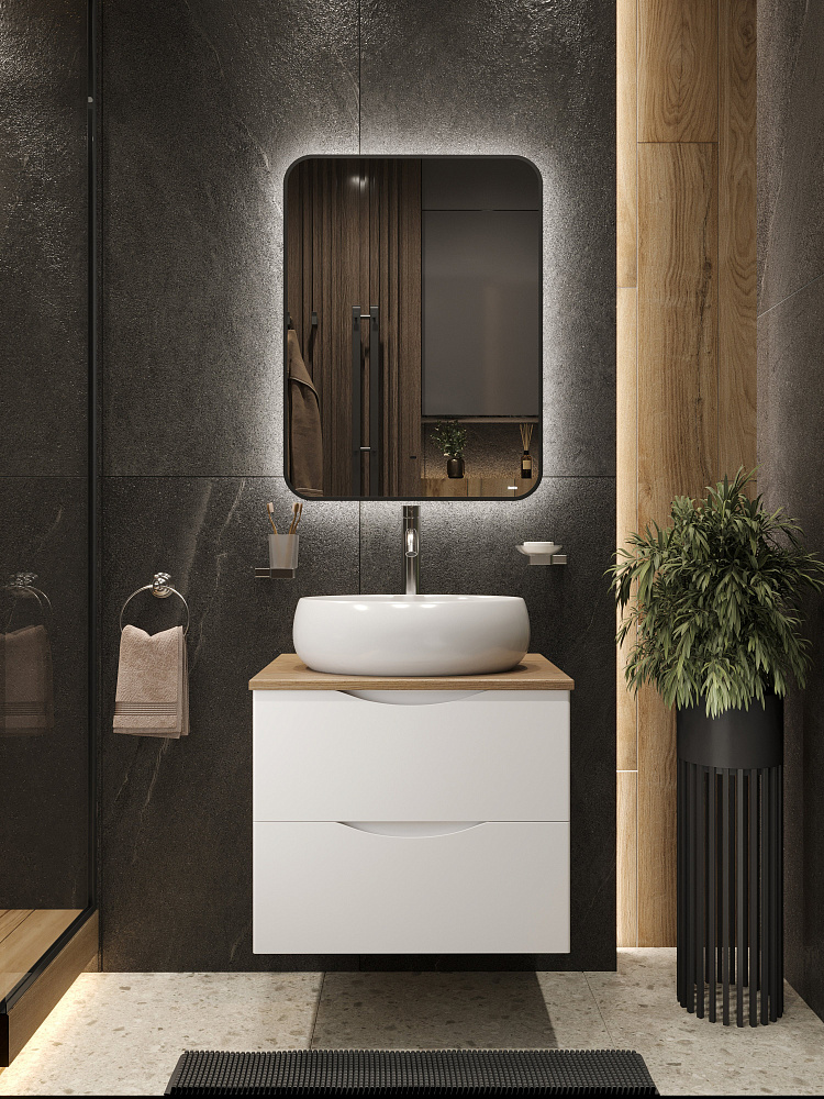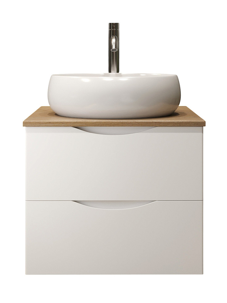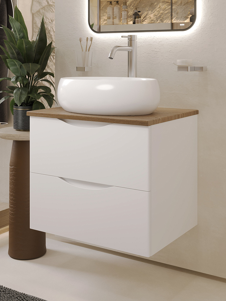 Тумба с раковиной BOND Куб 60 подвесная, матовая белая, под дерево, раковина Oval S58-490