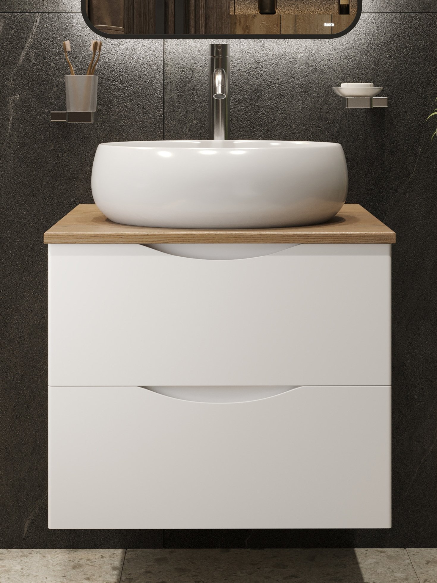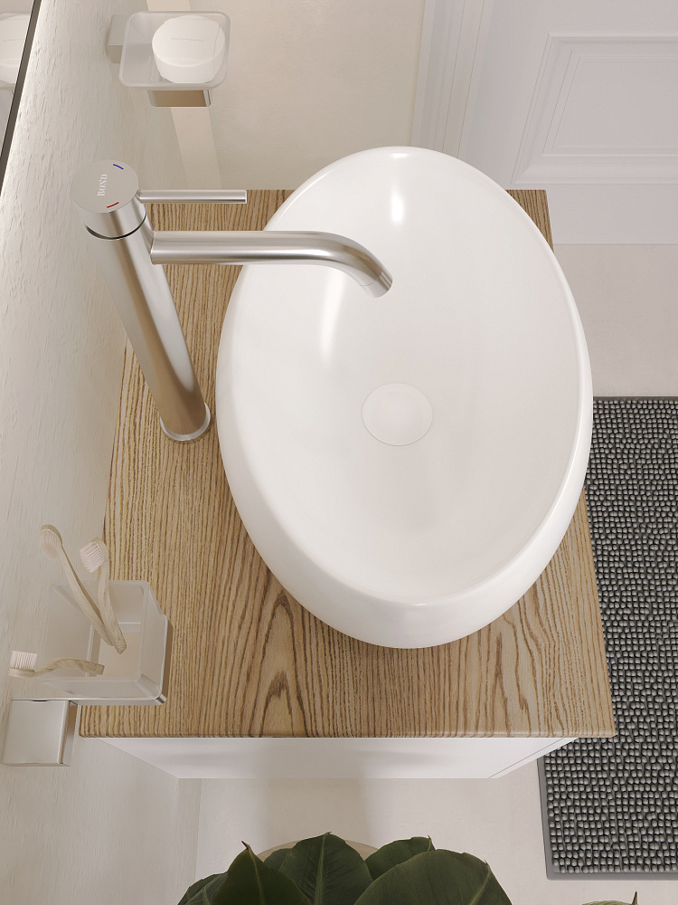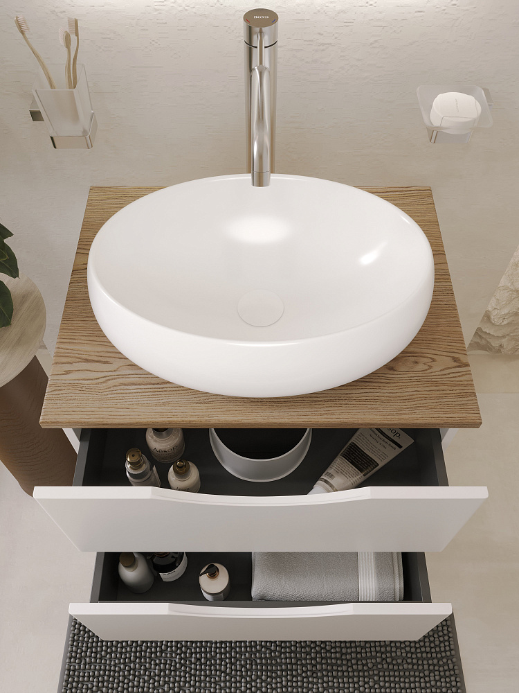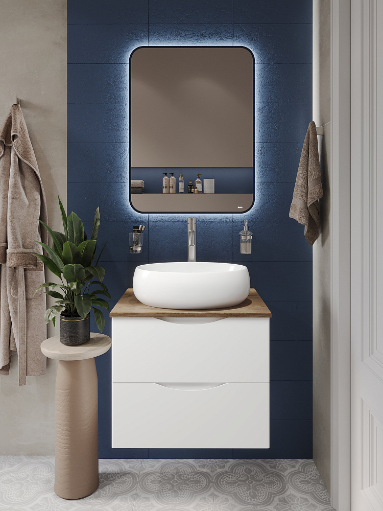 Тумба с раковиной BOND Куб 60 подвесная, матовая белая, под дерево, раковина Oval S58-490