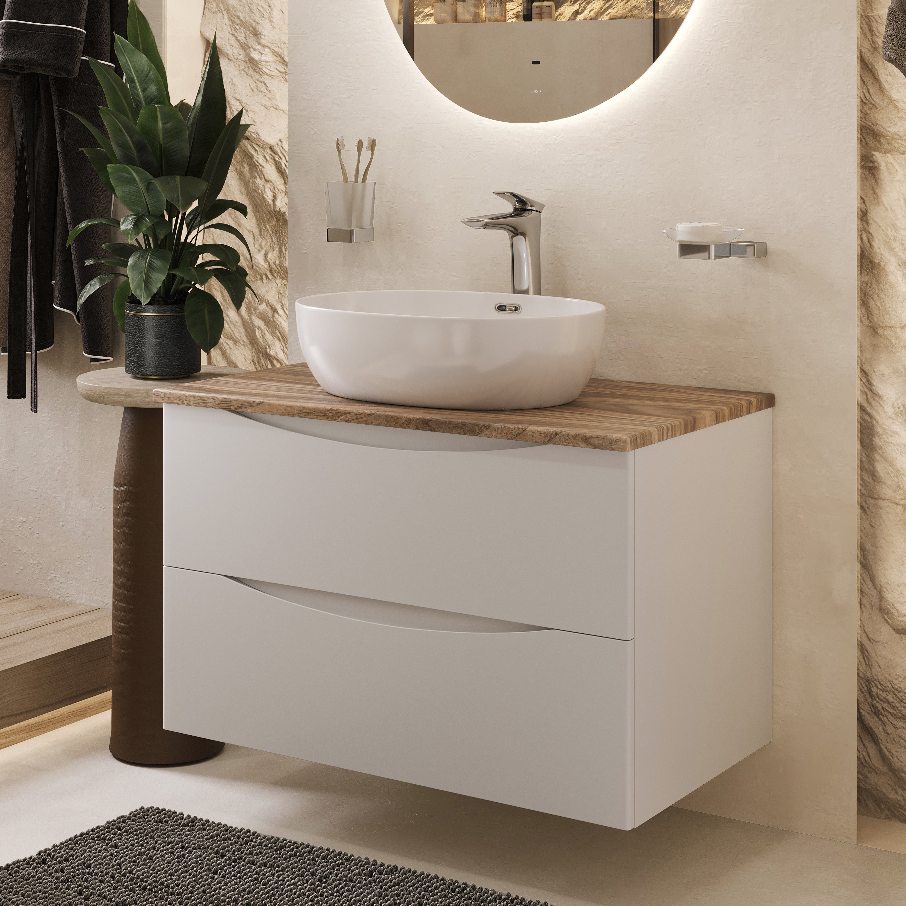 Тумба с раковиной BOND Куб 80 подвесная, белая, под дерево, с раковиной Oval S65-490