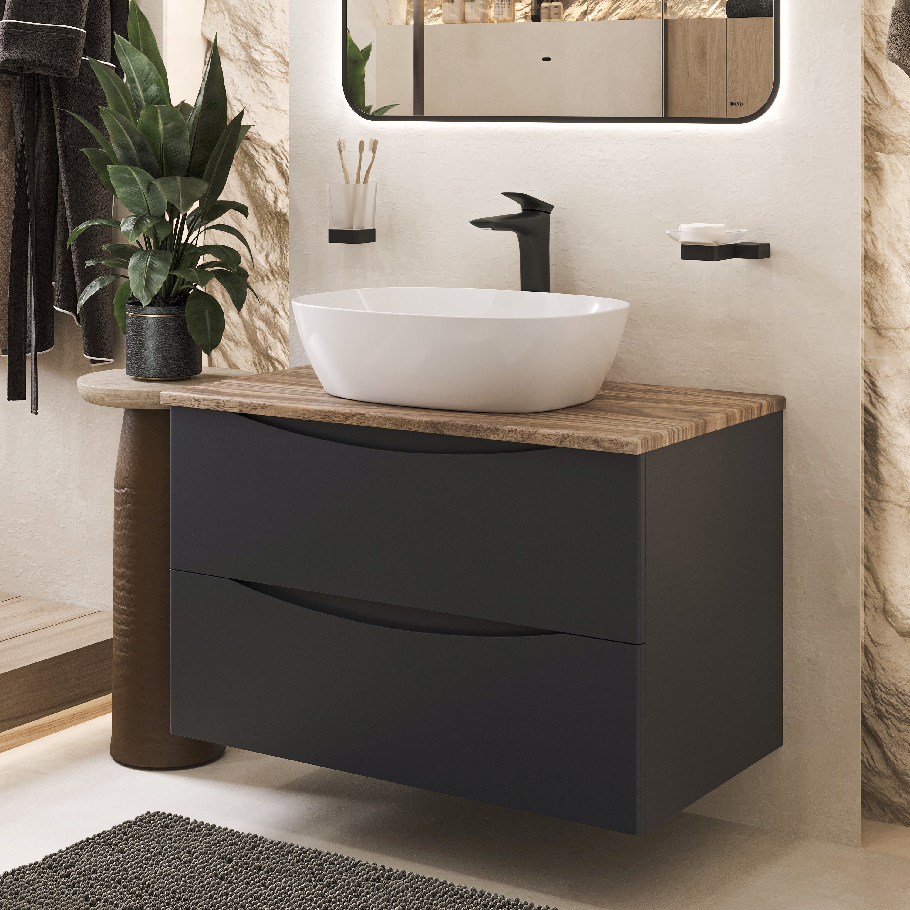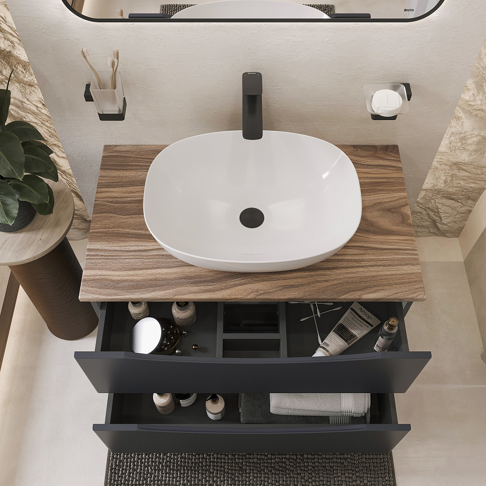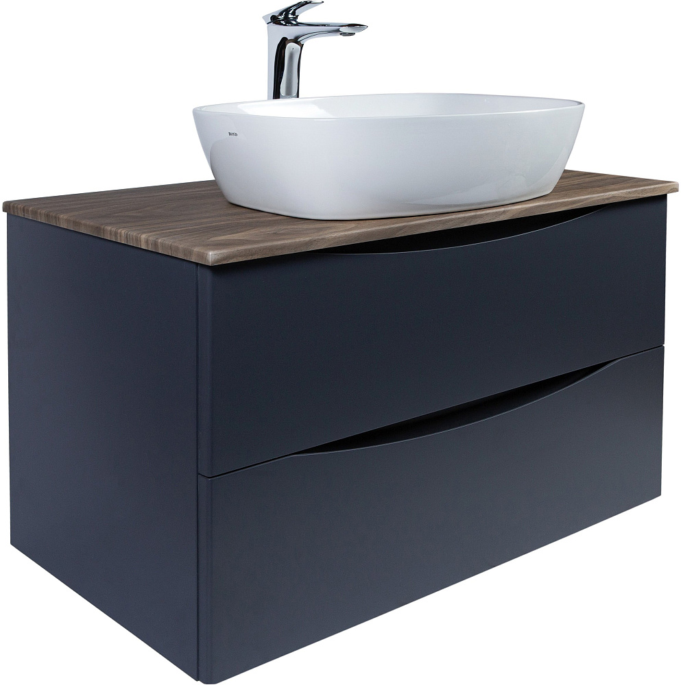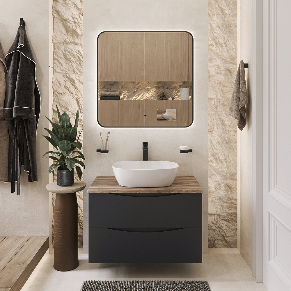 Тумба с раковиной BOND Куб 80 подвесная, серая, под дерево, с раковиной Cube S56-500