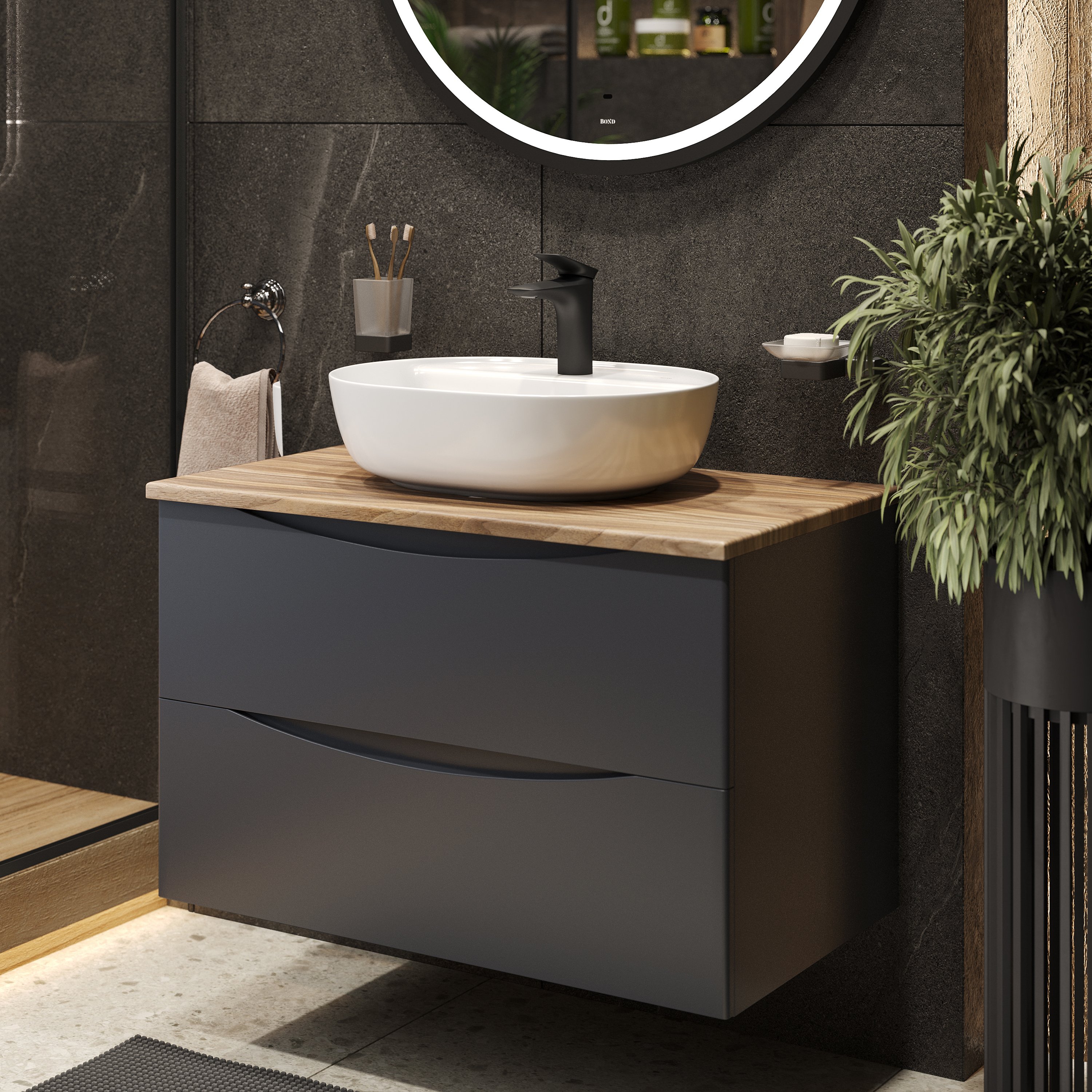 Тумба с раковиной BOND Куб 80 подвесная, серая, под дерево, с раковиной Oval S01-500