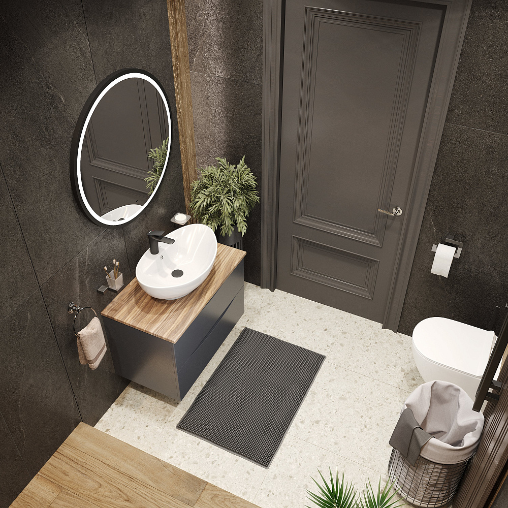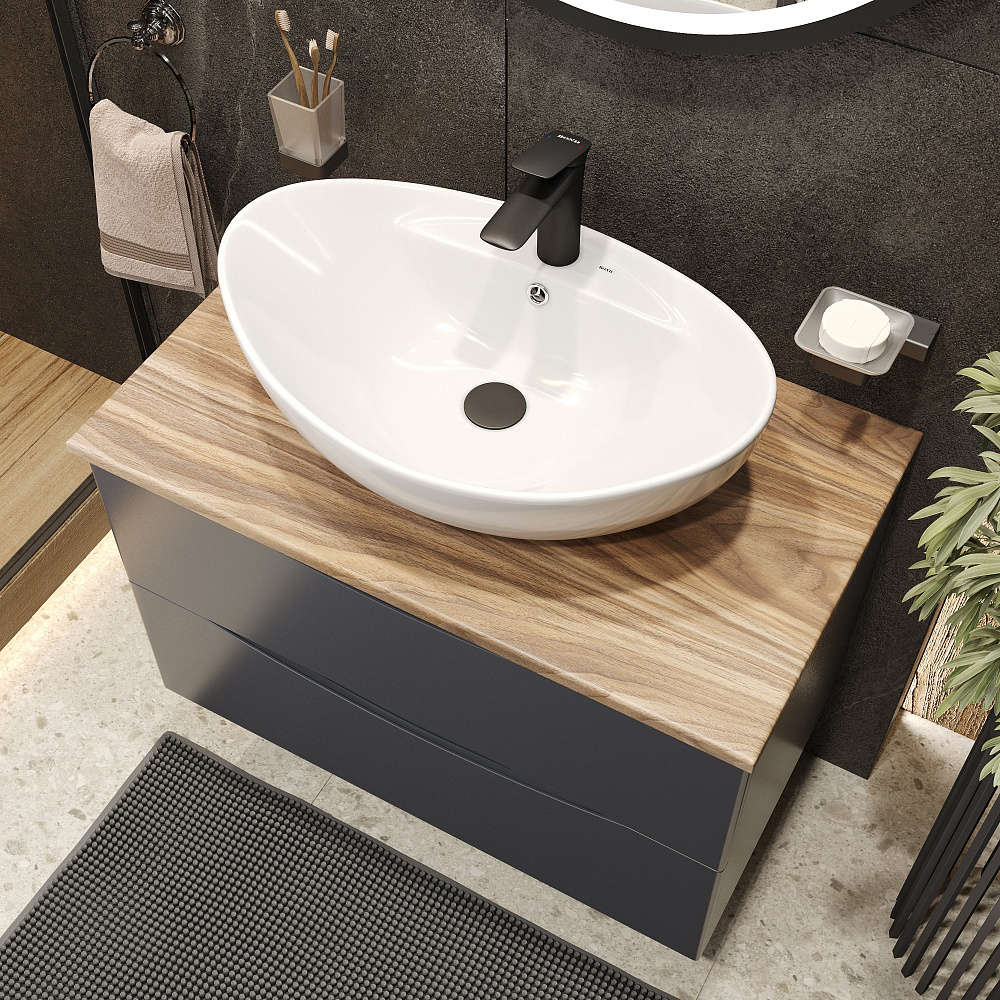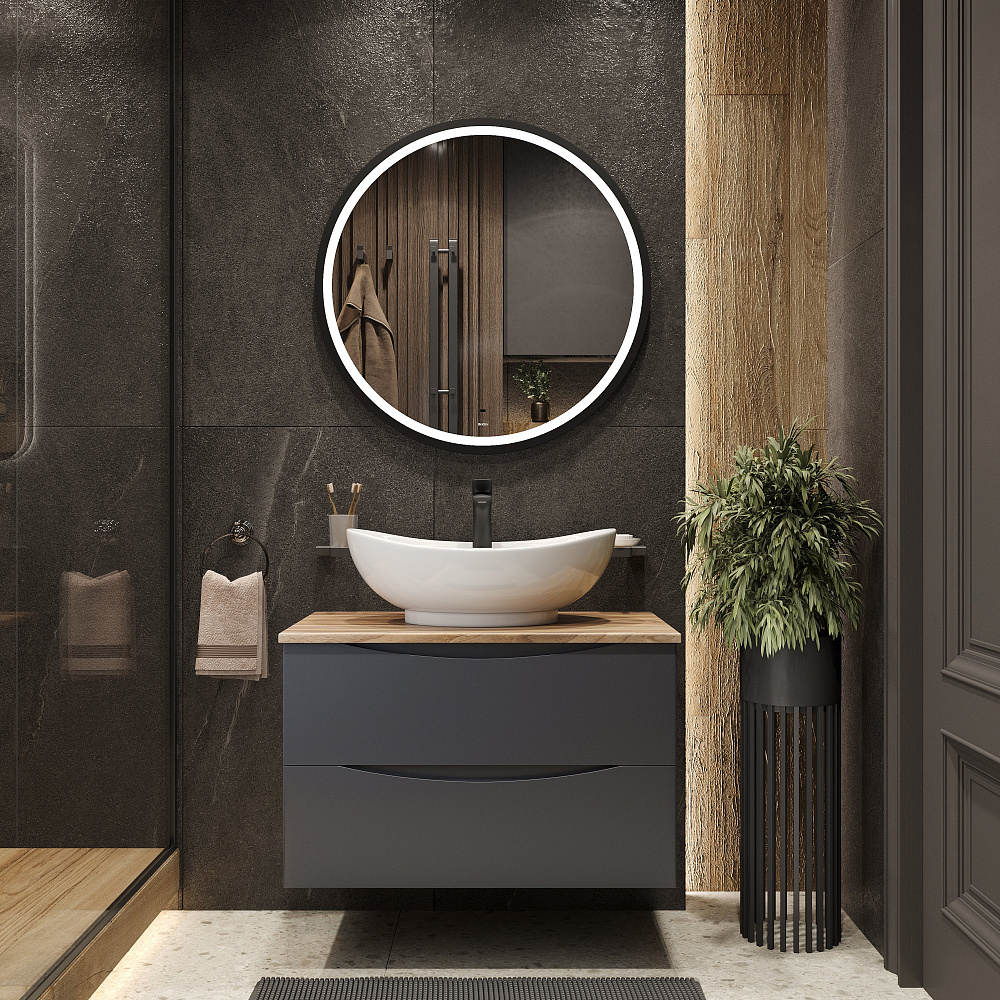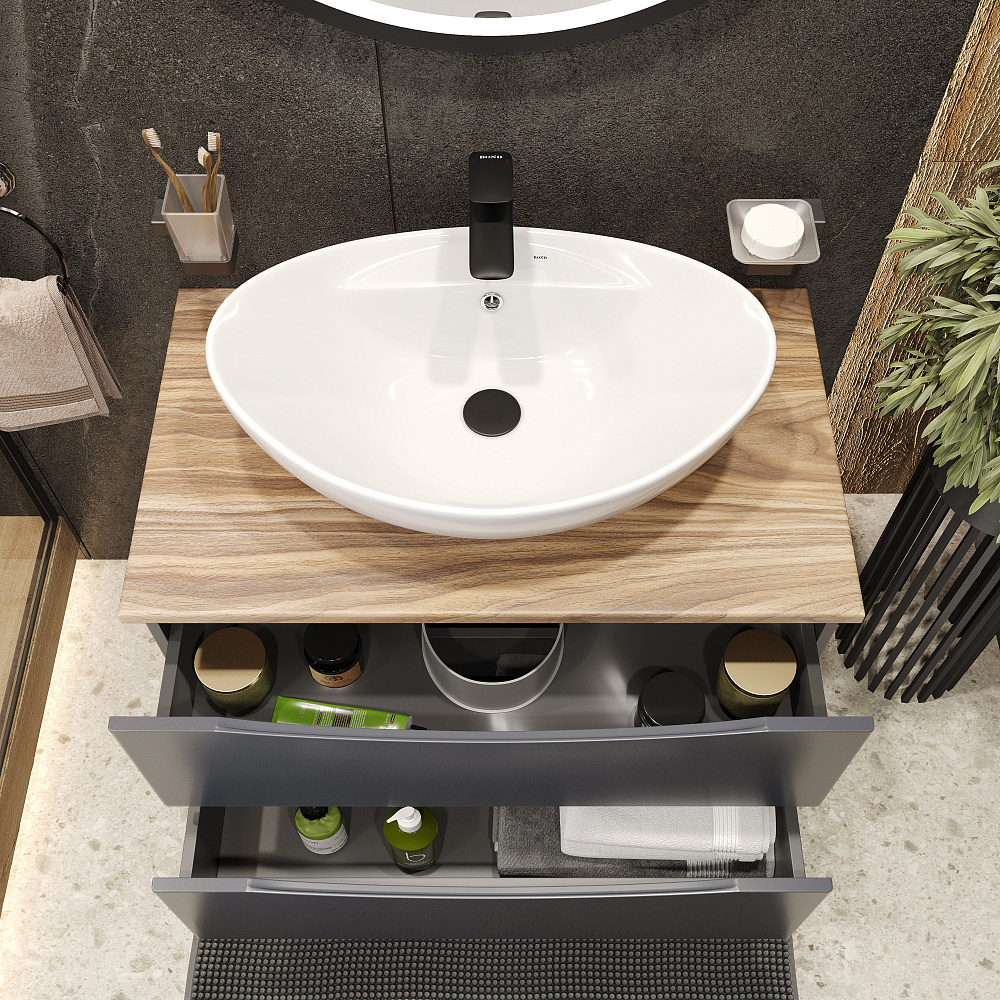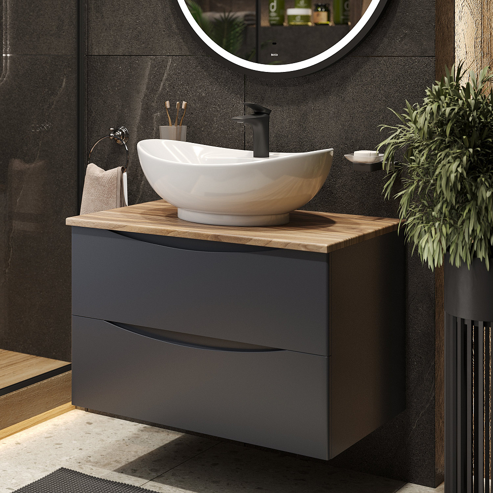 Тумба с раковиной BOND Куб 80 подвесная, серая, под дерево, с раковиной Oval S15-590