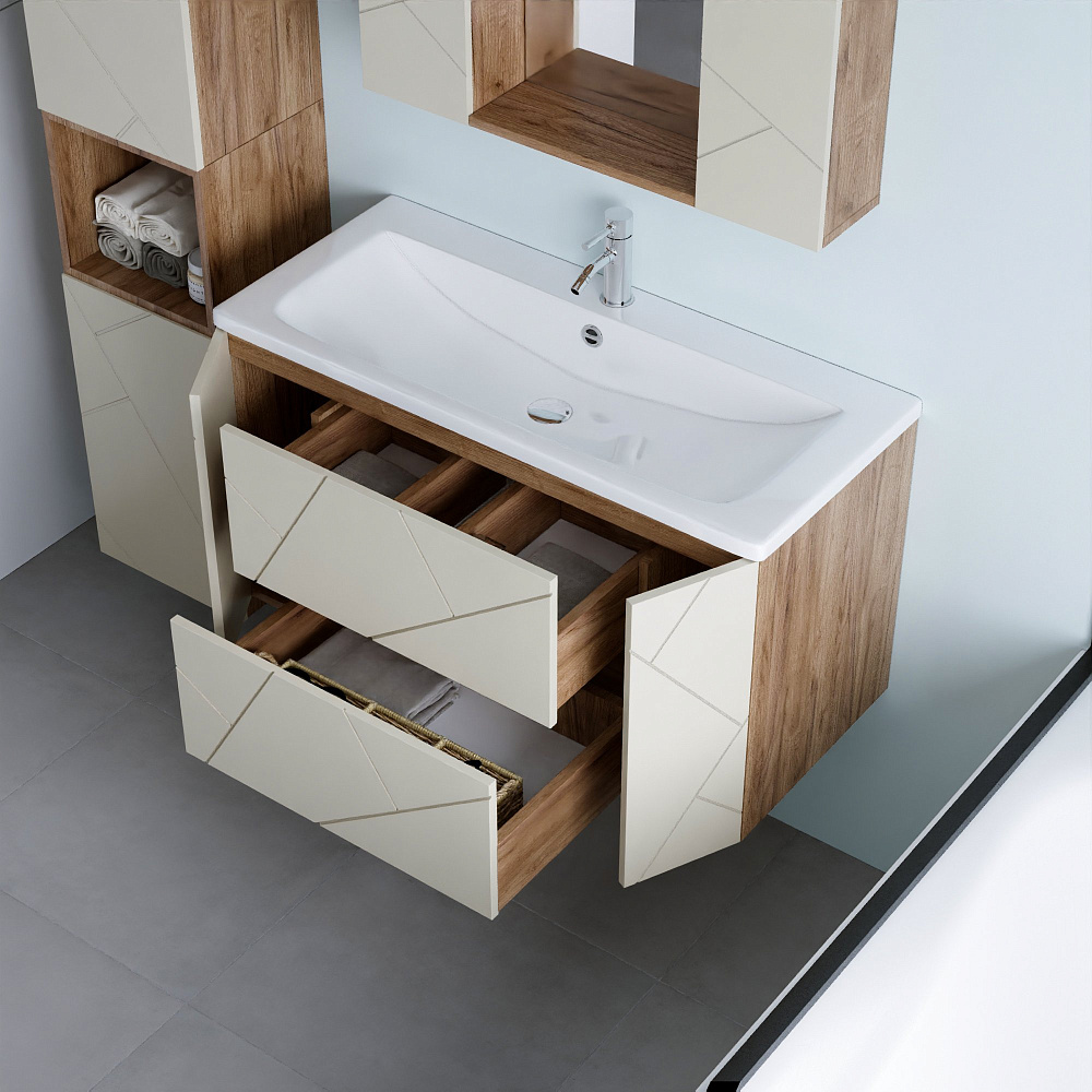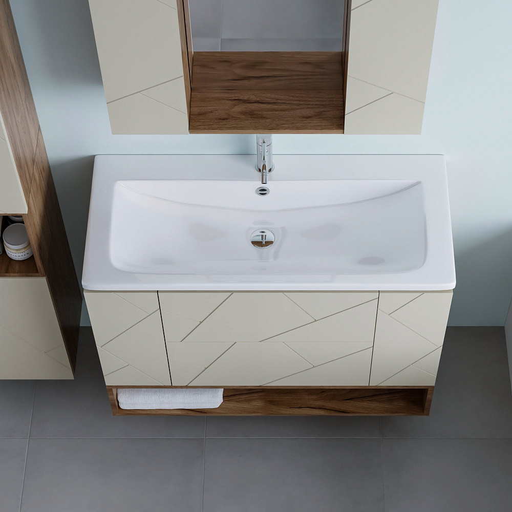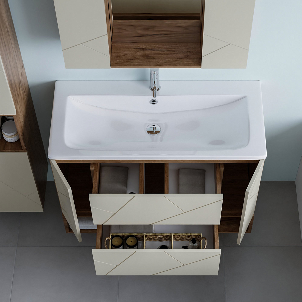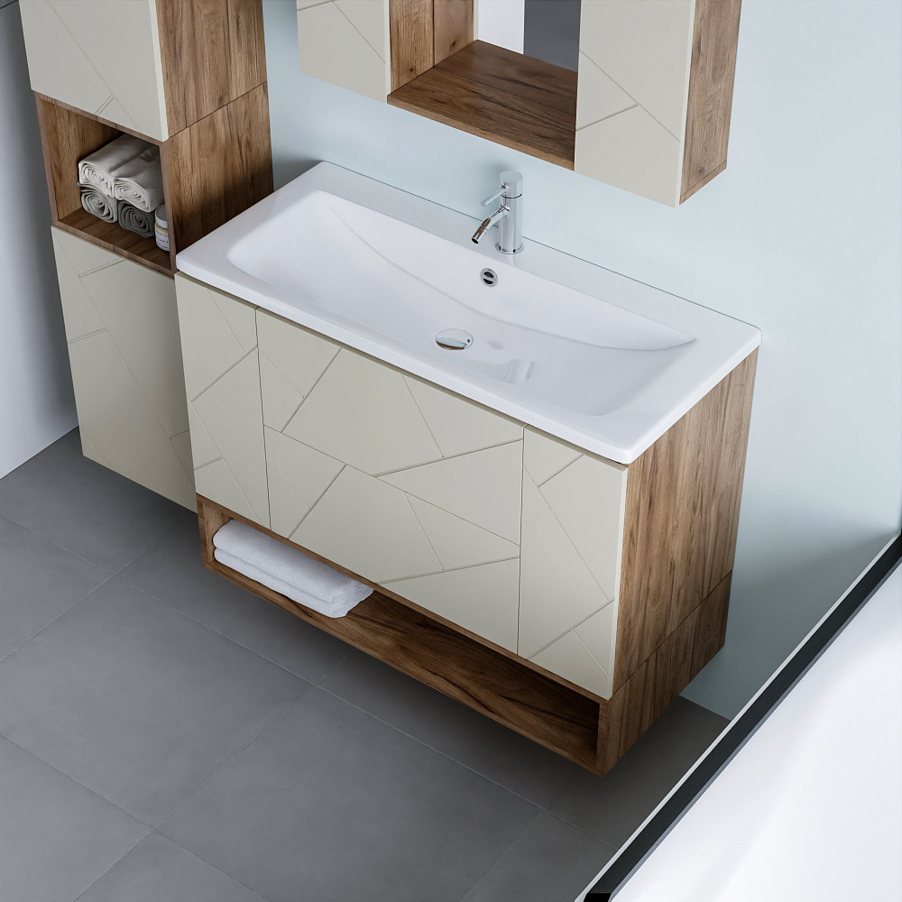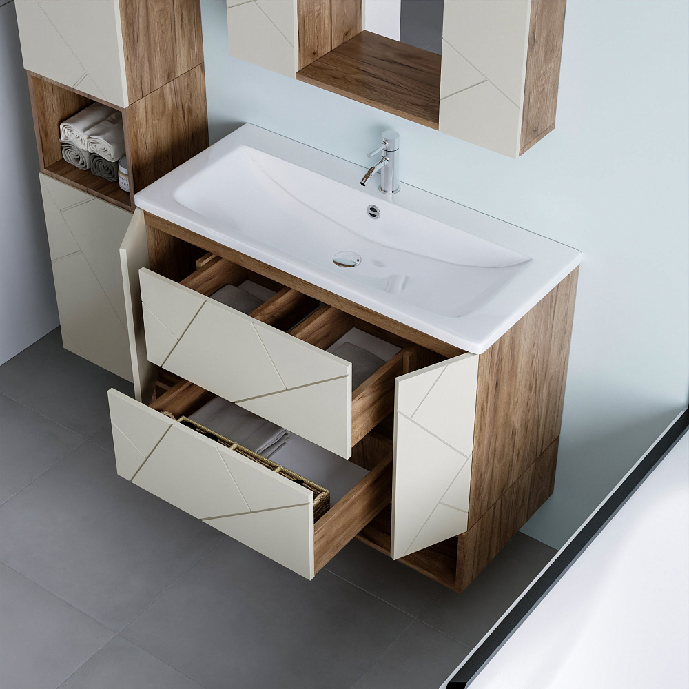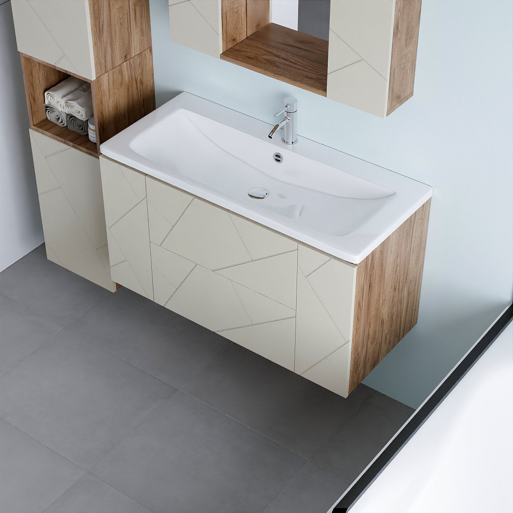 Тумба с раковиной Бриклаер Кристалл 100 латте, дуб крафт табачный