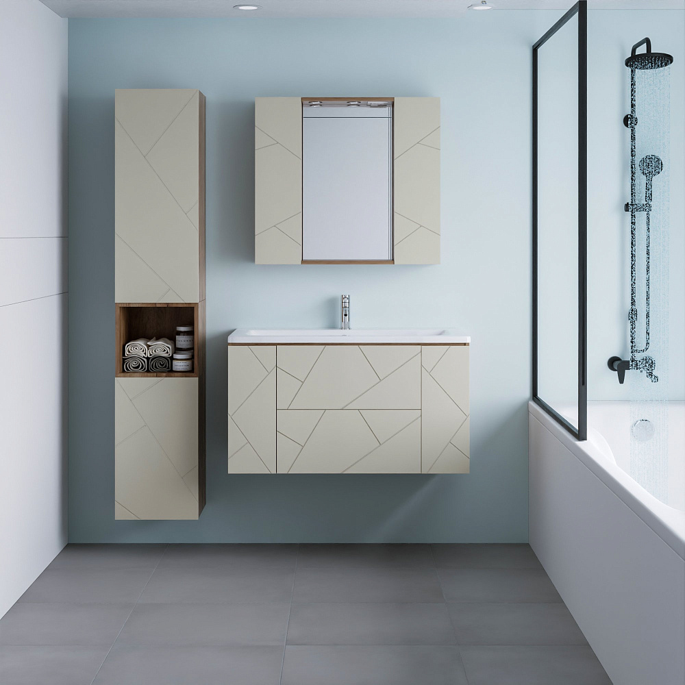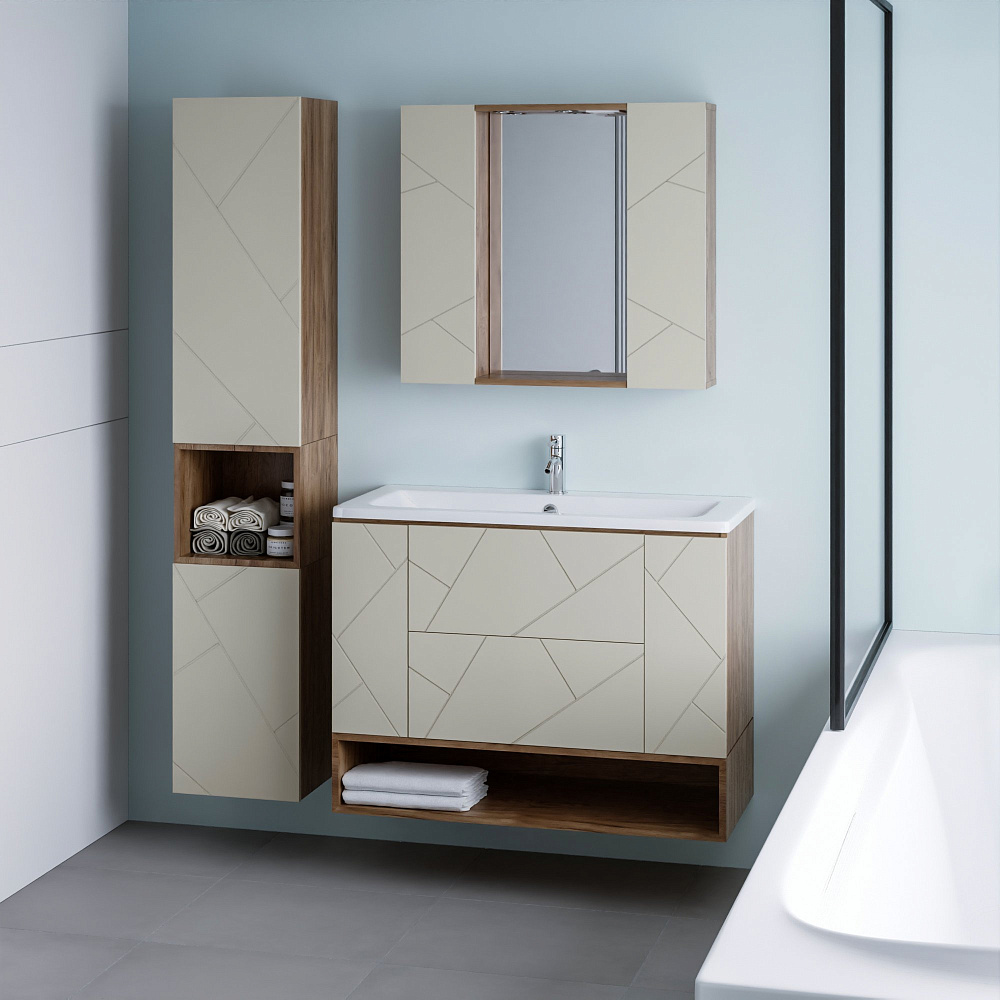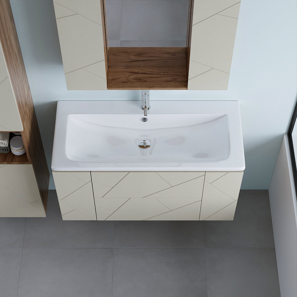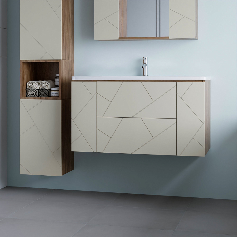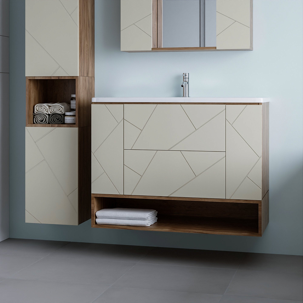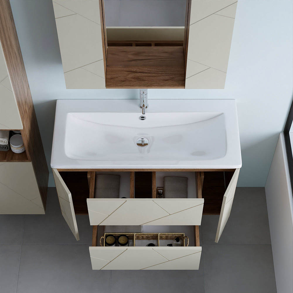 Тумба с раковиной Бриклаер Кристалл 100 латте, дуб крафт табачный