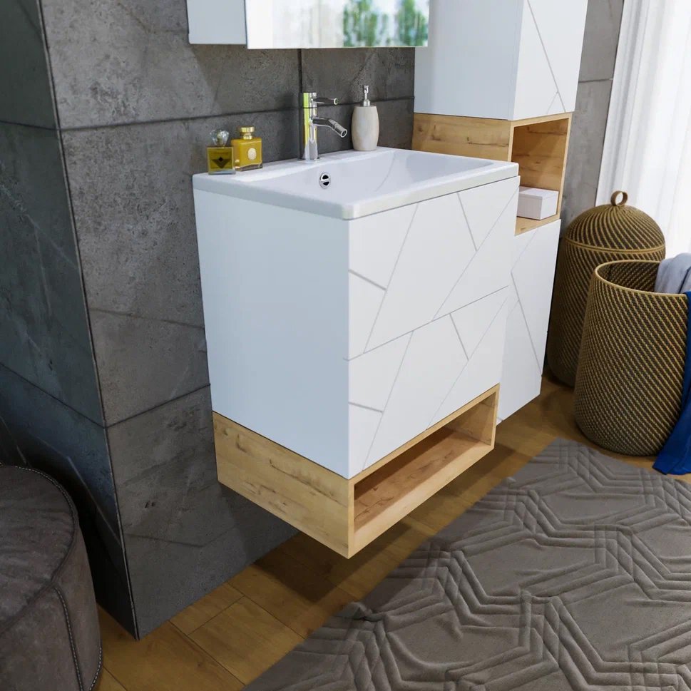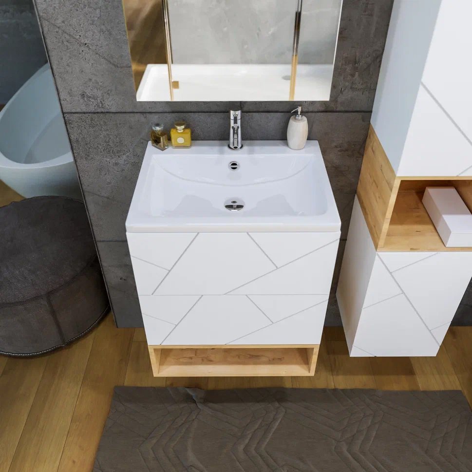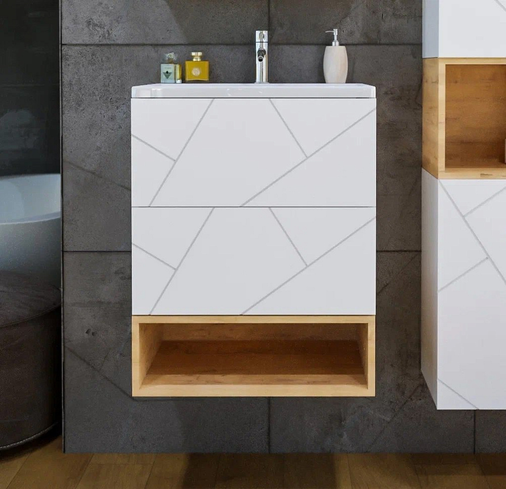Тумба с раковиной Бриклаер Кристалл 60 белая матовая