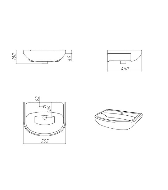 Тумба с раковиной Misty Элегия 55 напольная, глянцевая белая