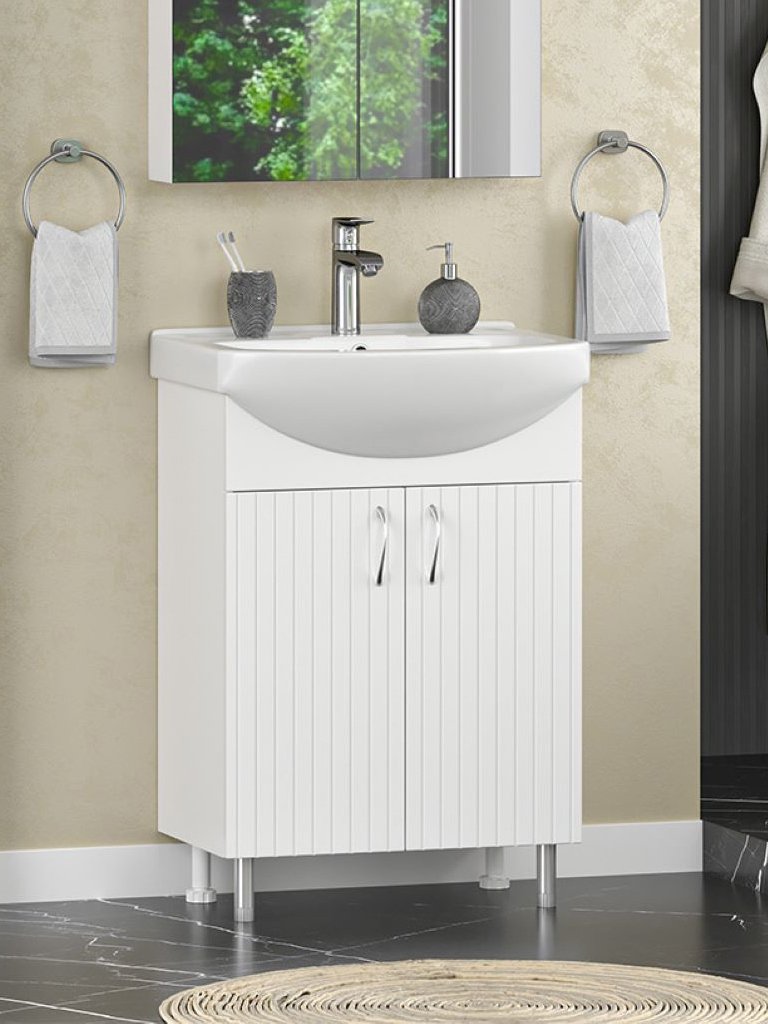 Тумба с раковиной Misty Изео 60 напольная, глянцевая белая