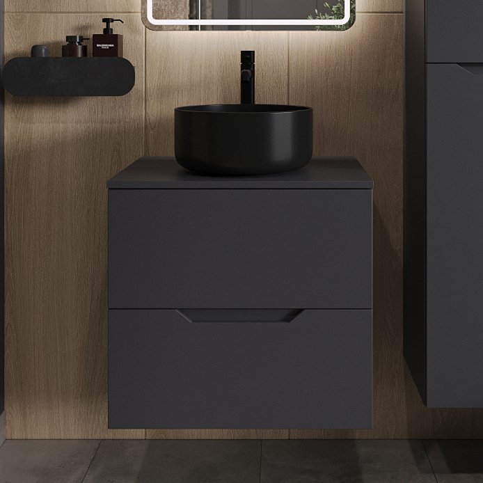 Тумба с раковиной Orange Line 60 подвесная, 2 ящика, матовый графит с раковиной B07-345B