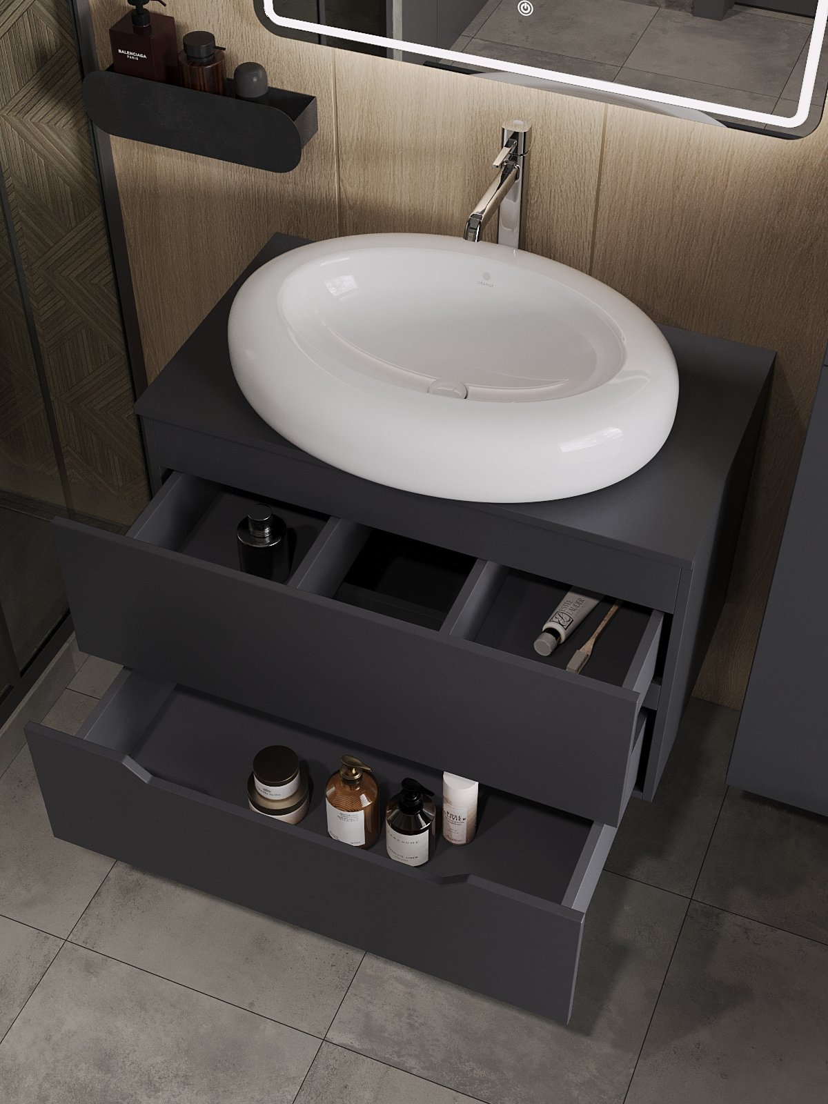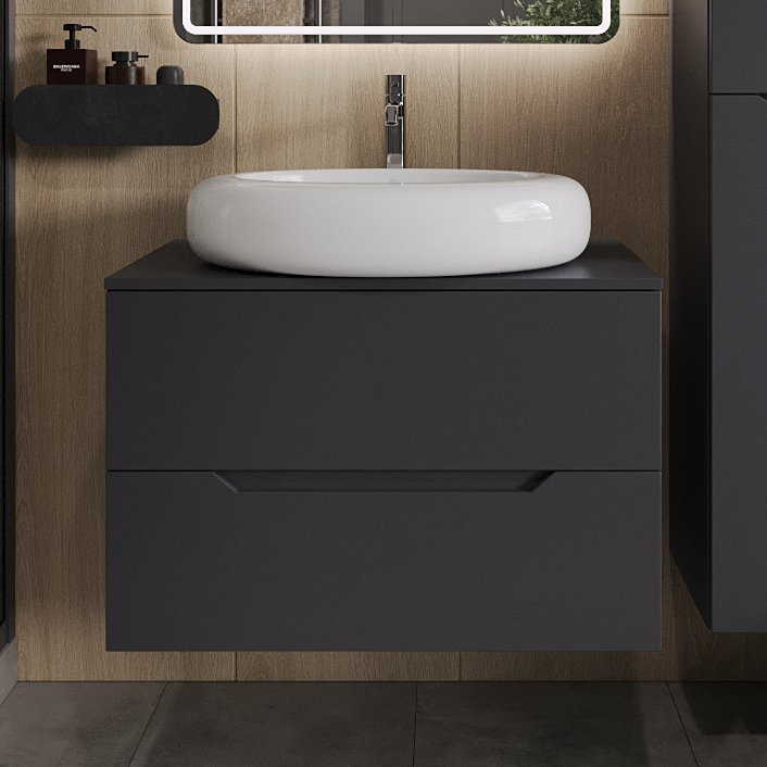 Тумба с раковиной Orange Line 80 подвесная, 2 ящика, матовый графит с раковиной B08-640w