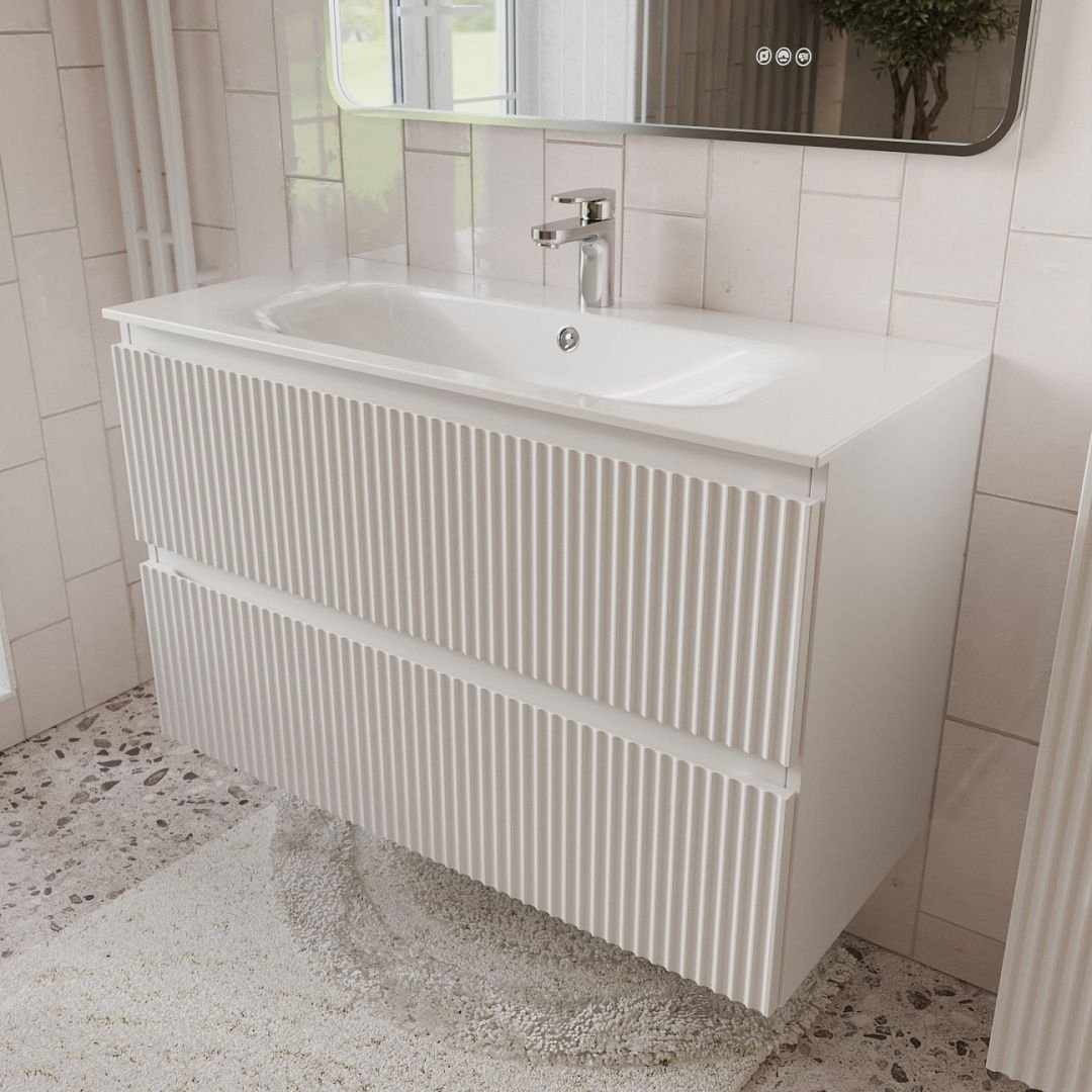 Тумба с раковиной подвесная Terminus Sicilia, 100 см, 2 ящика, белый