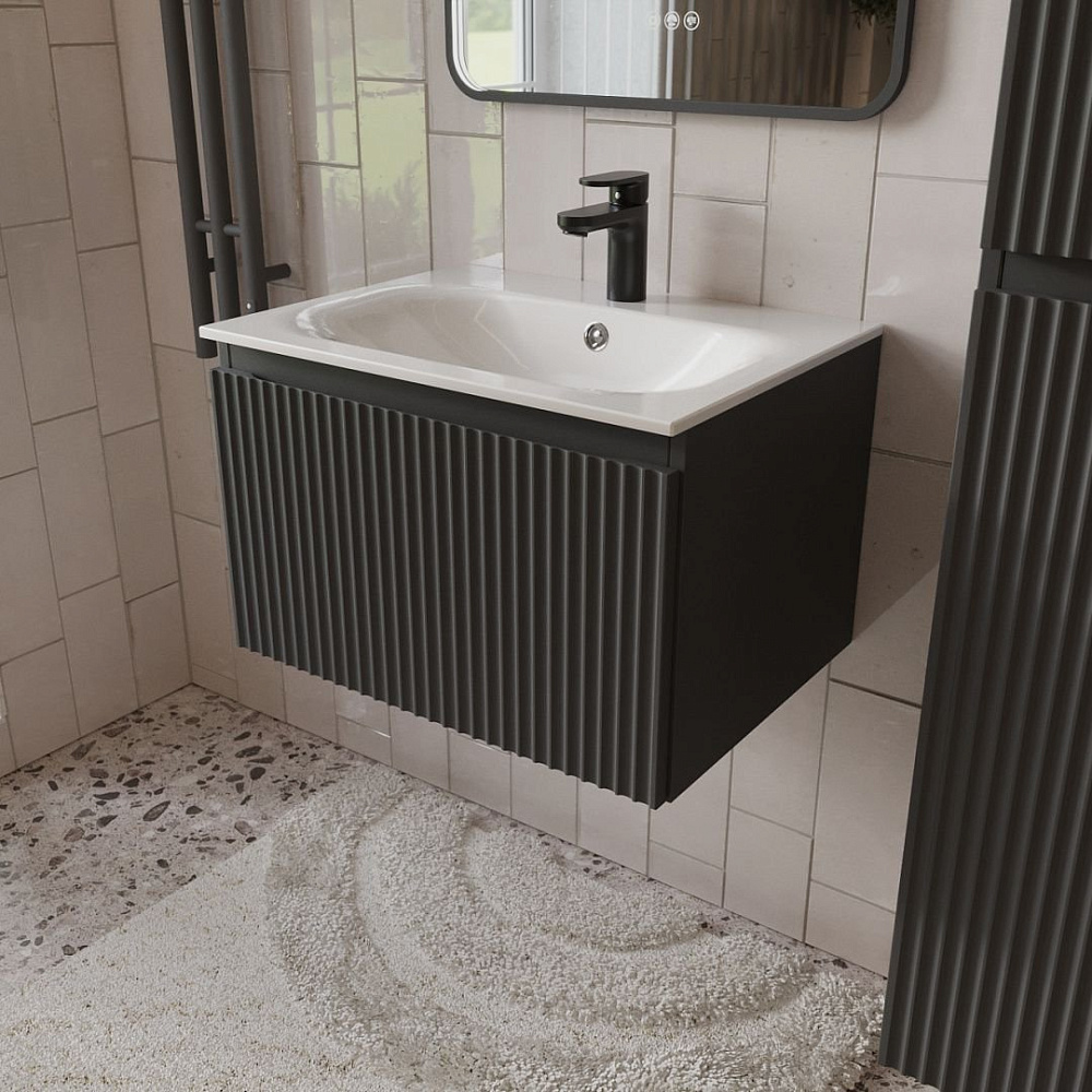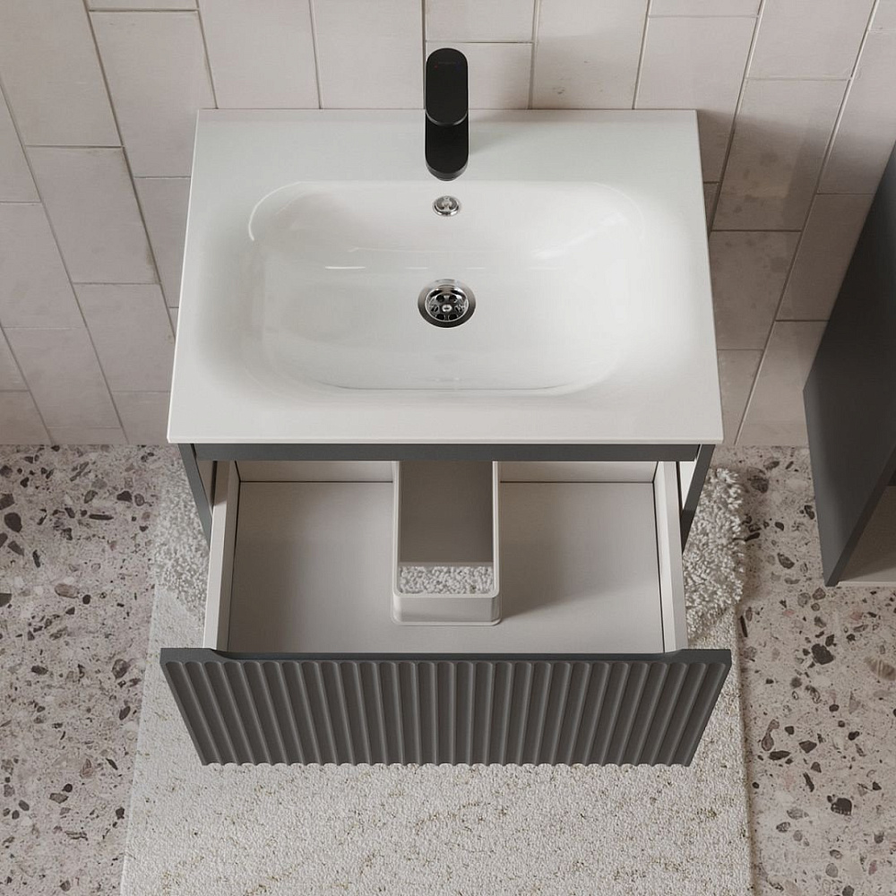 Тумба с раковиной подвесная Terminus Sicilia, 60 см, 1 ящик, графит