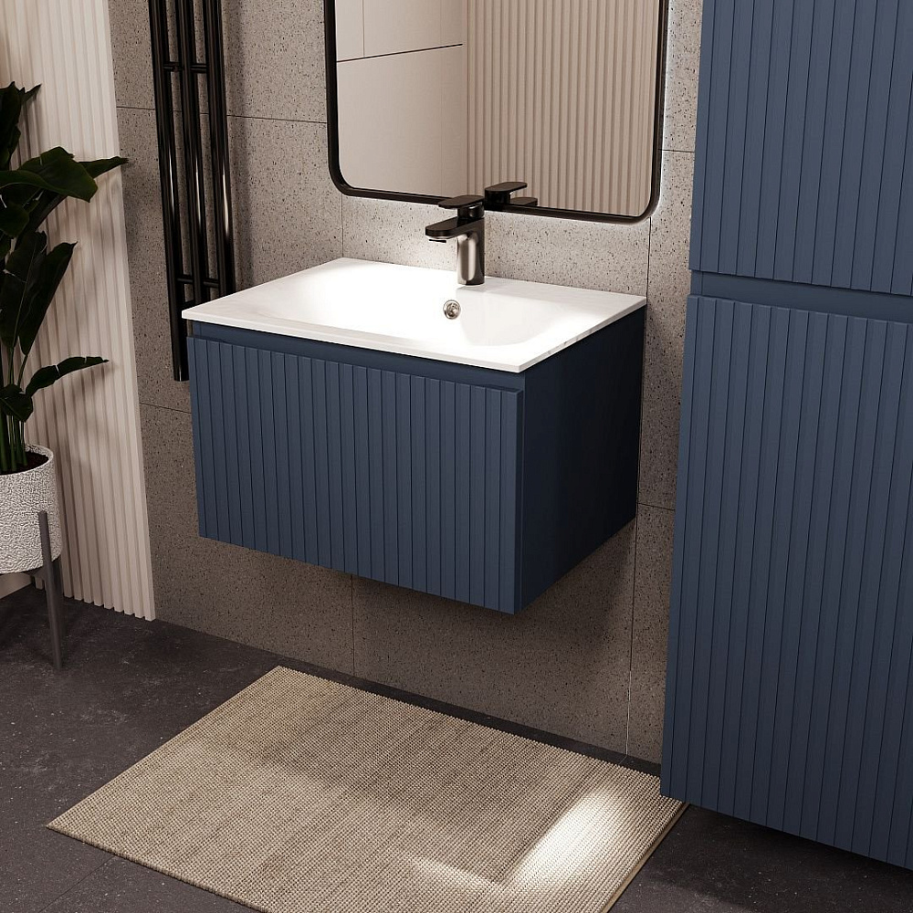 Тумба с раковиной подвесная Terminus Vatikan, 60 см, 1 ящик, серый шёлк