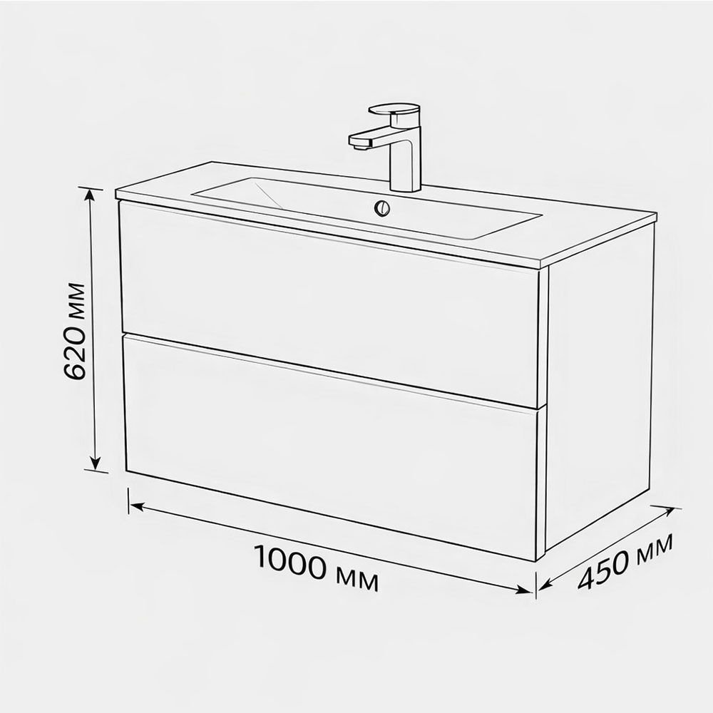 Тумба с раковиной подвесная Terminus Vega, 100 см, 2 ящика, графит