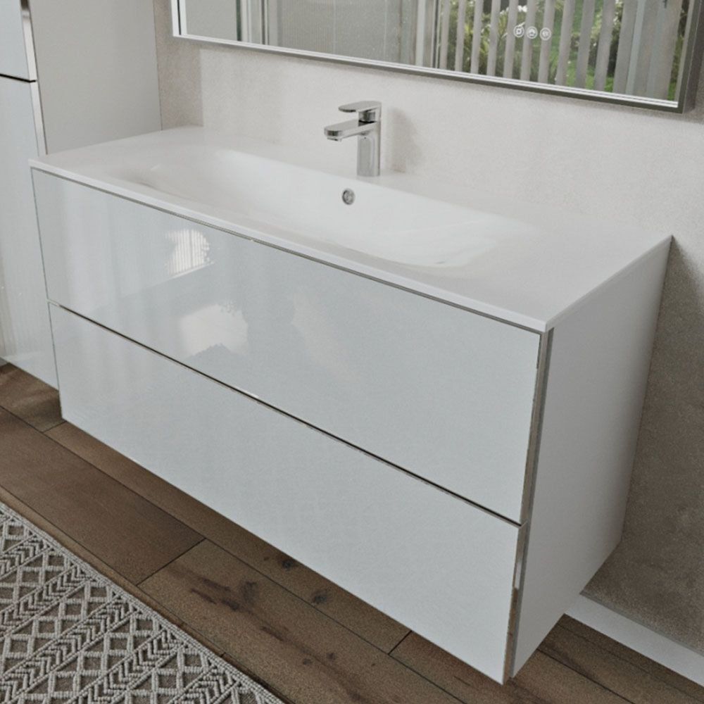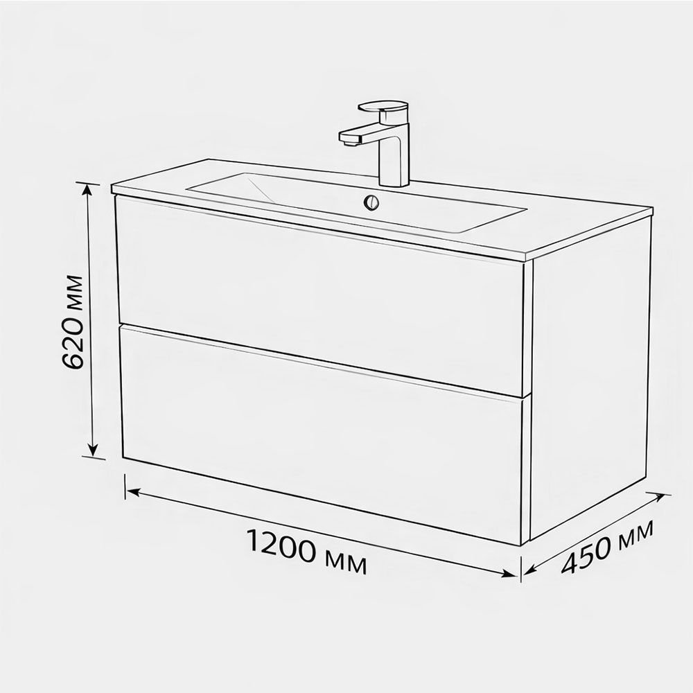 Тумба с раковиной подвесная Terminus Vega, 120 см, 2 ящика, белый