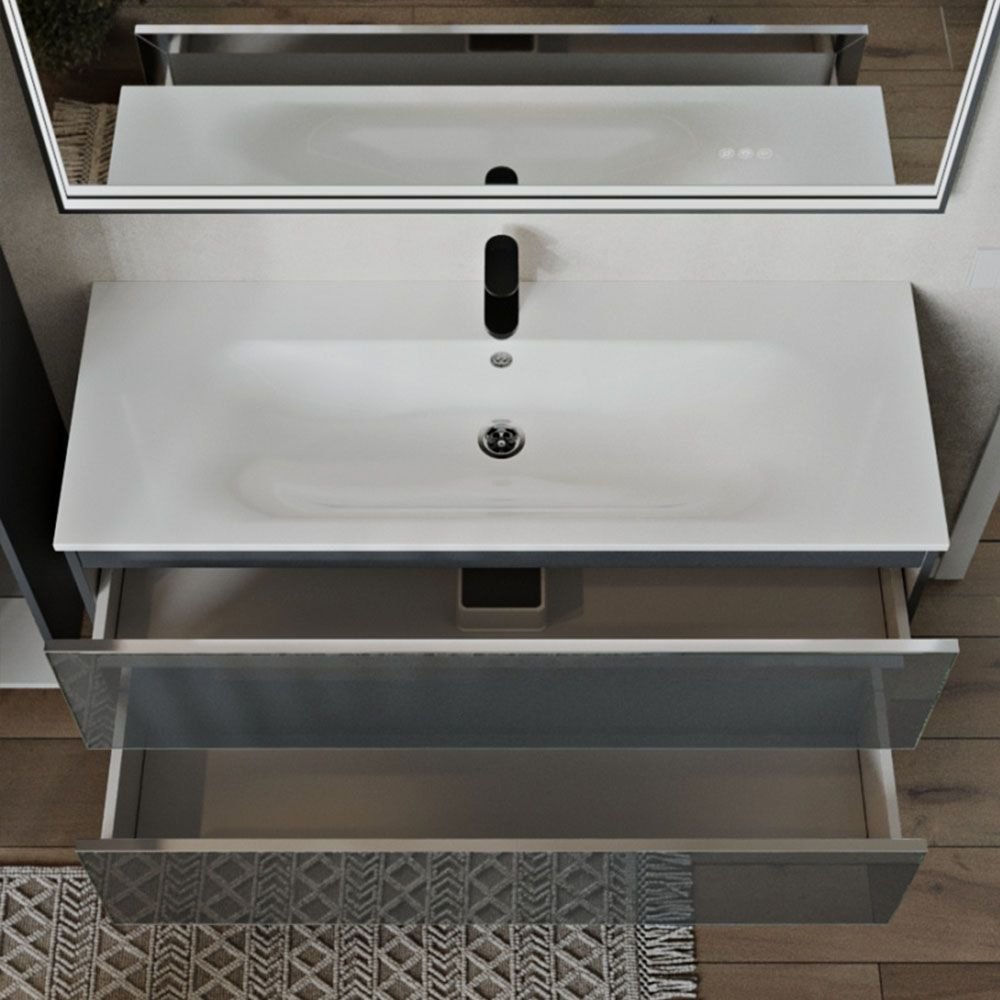 Тумба с раковиной подвесная Terminus Vega, 120 см, 2 ящика, графит