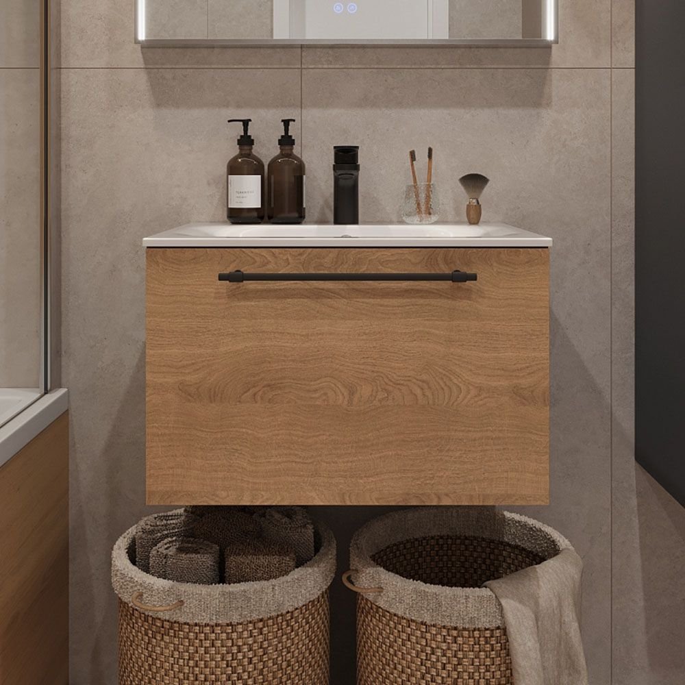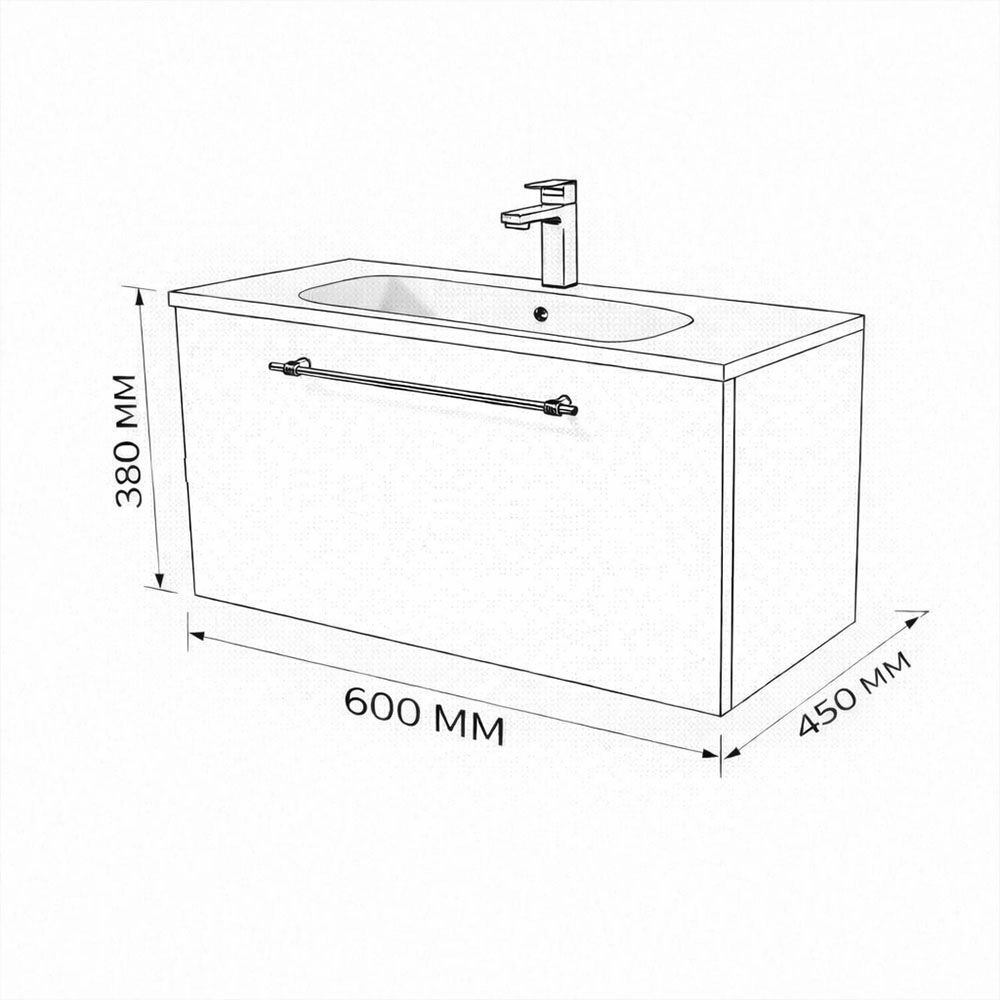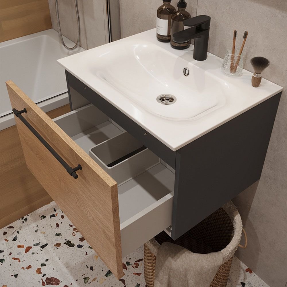 Тумба с раковиной подвесная Terminus Venta 60 см, 1 ящик, шпон/дуб