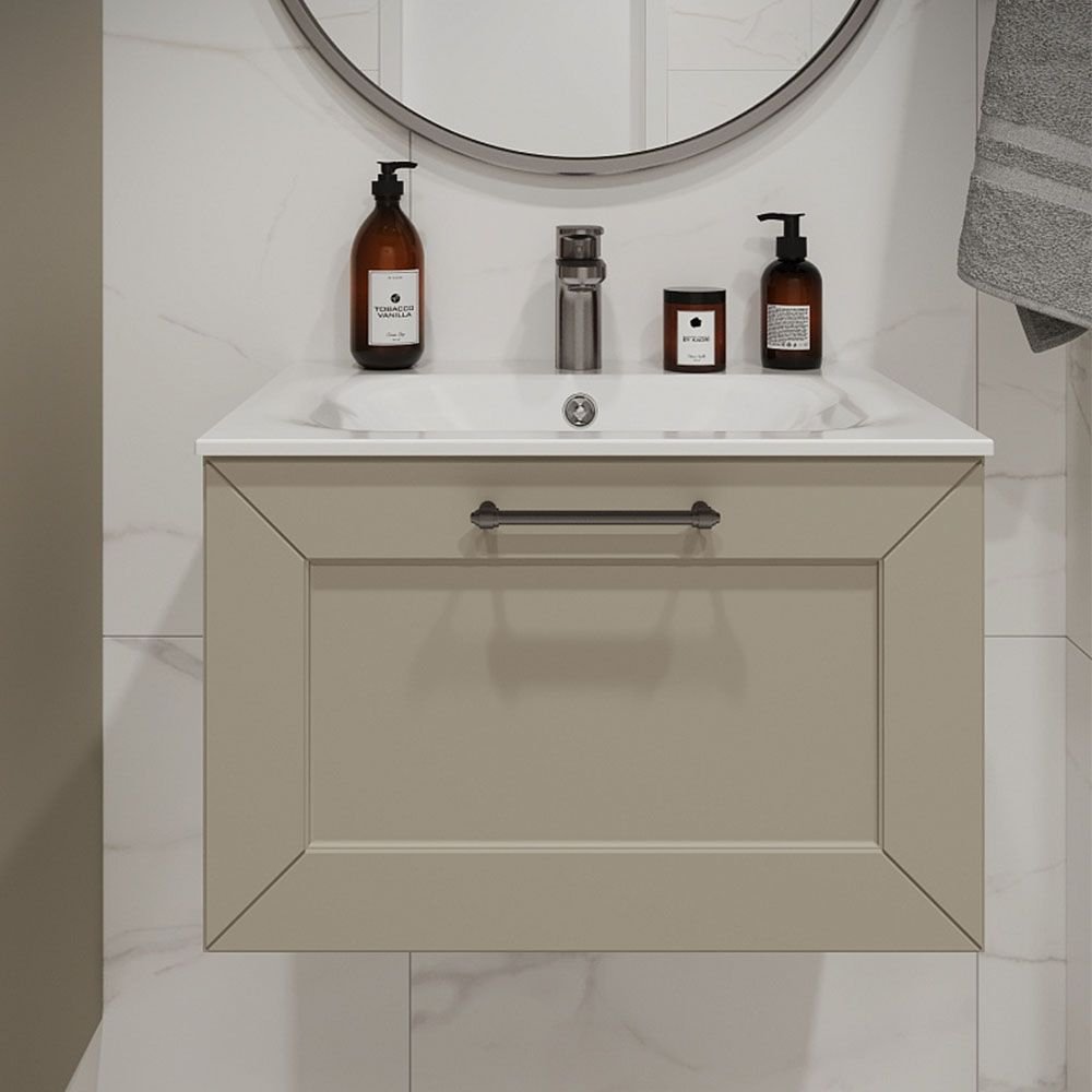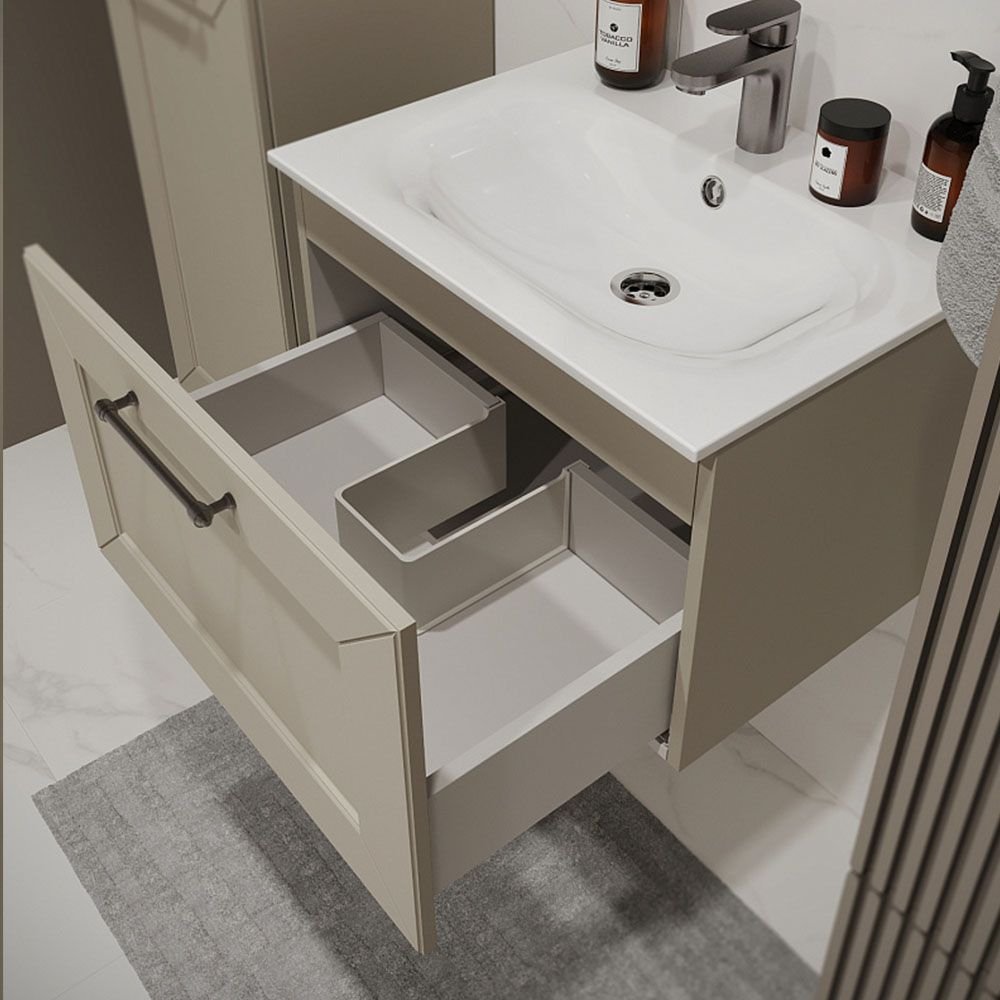 Тумба с раковиной подвесная Terminus Victoria 60 см, 1 ящик, айвори