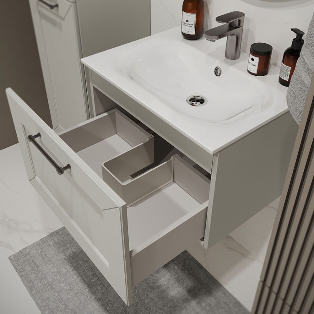 Тумба с раковиной подвесная Terminus Victoria 60 см, 1 ящик, белый