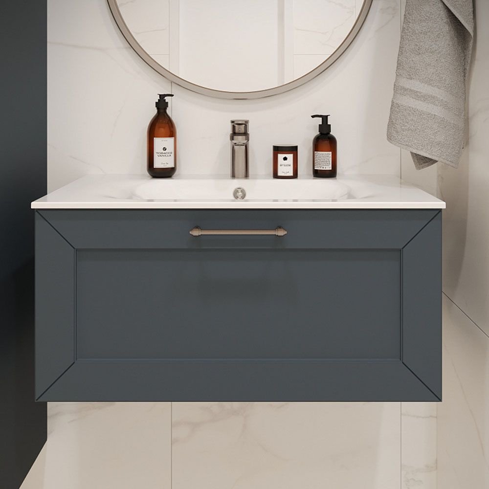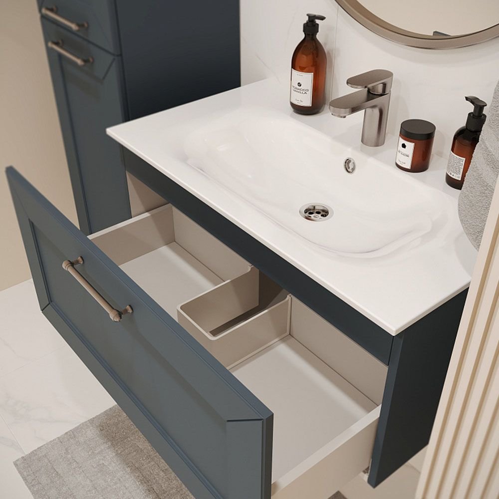 Тумба с раковиной подвесная Terminus Victoria 80 см, 1 ящик, серый шёлк