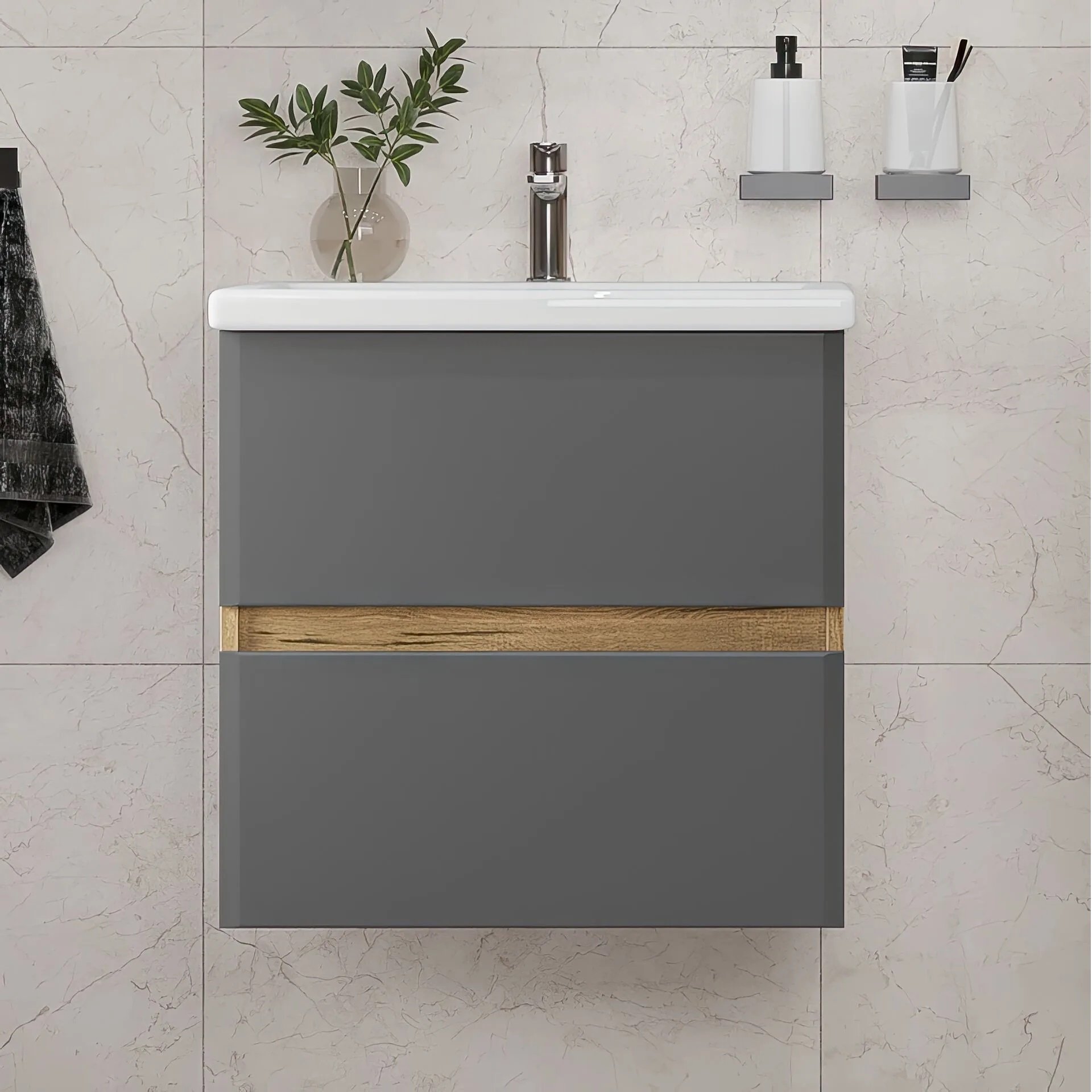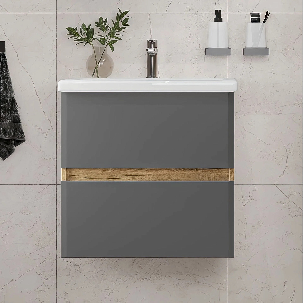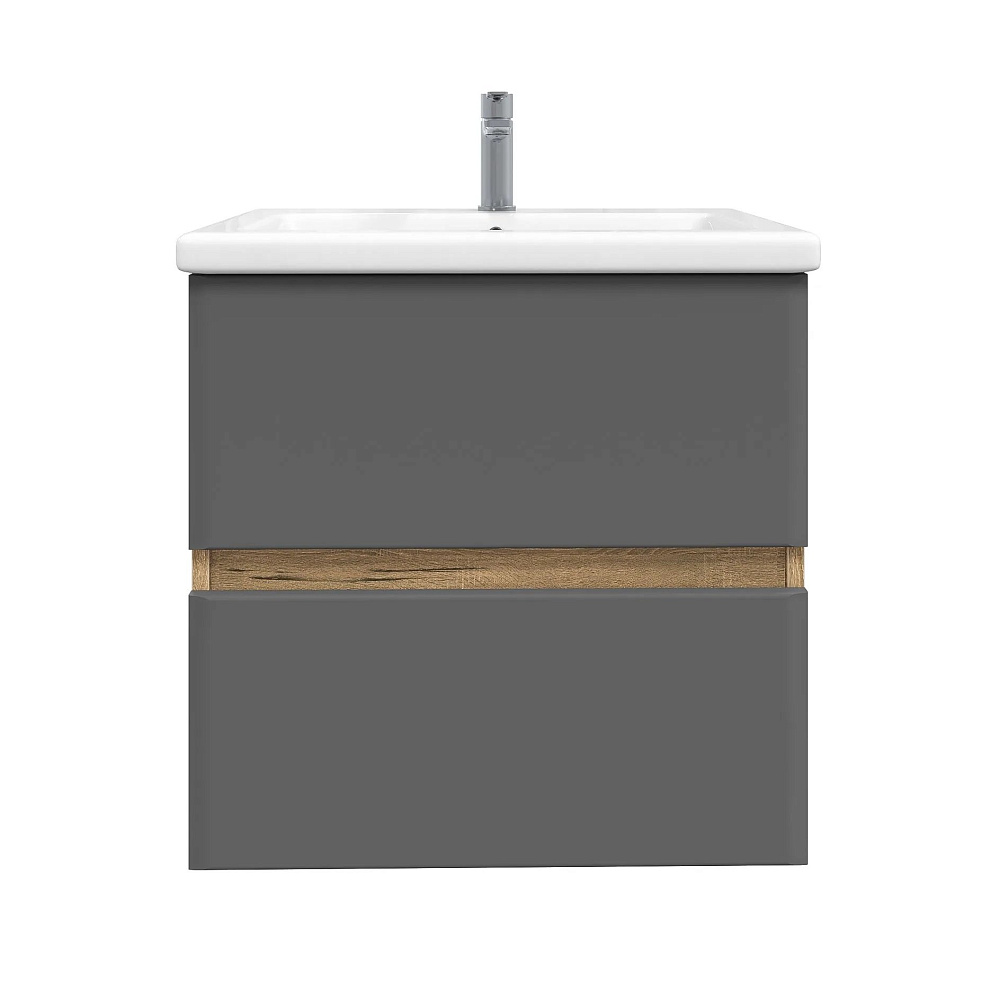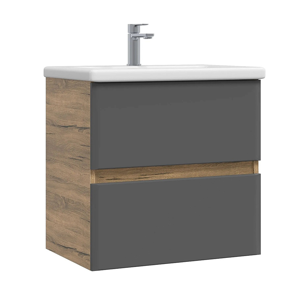 Тумба с раковиной SanStar Graffa 50 подвесная, дуб вотан, графит софт, раковина Фостер