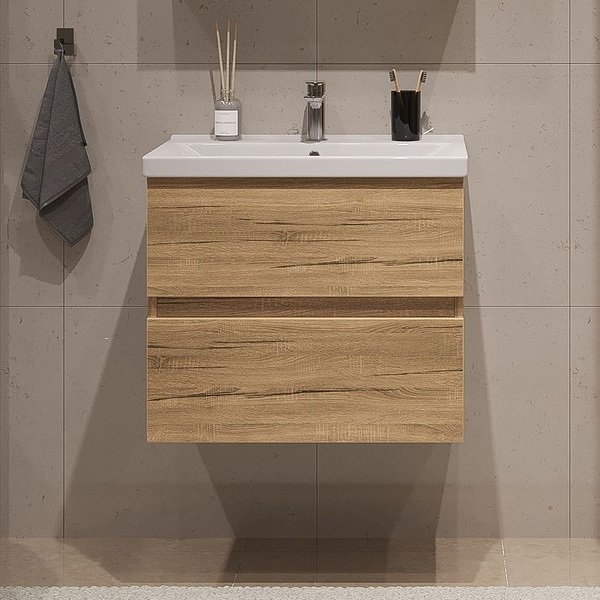 Тумба с раковиной SanStar Lavanti 60 подвесная, дуб вотан, раковина Фостер