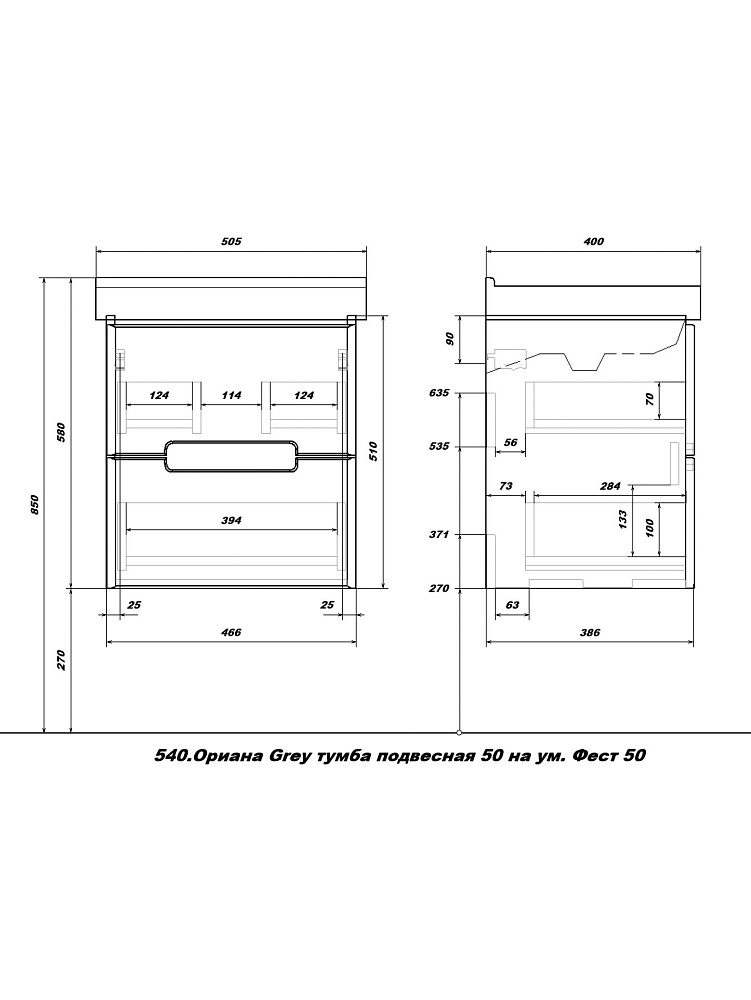 Тумба с раковиной SanStar Ориана 50 подвесная, серая, раковина Sanita luxe Fest 50