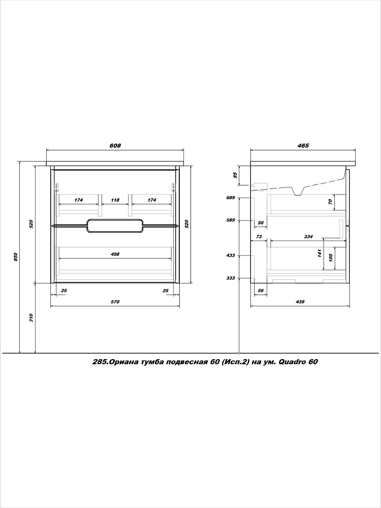 Тумба с раковиной SanStar Ориана 60 подвесная, раковина Sanita luxe Quadro 60