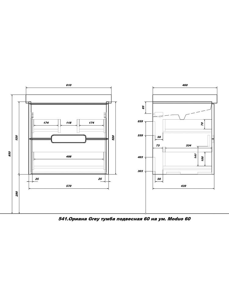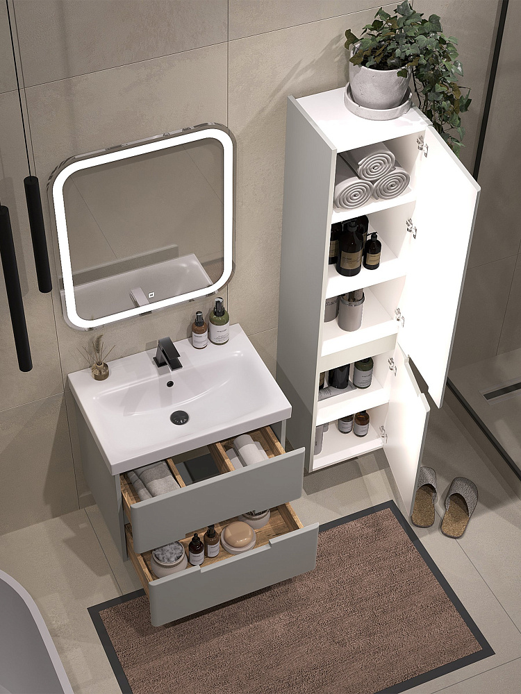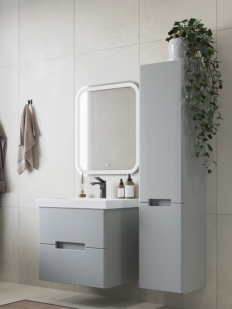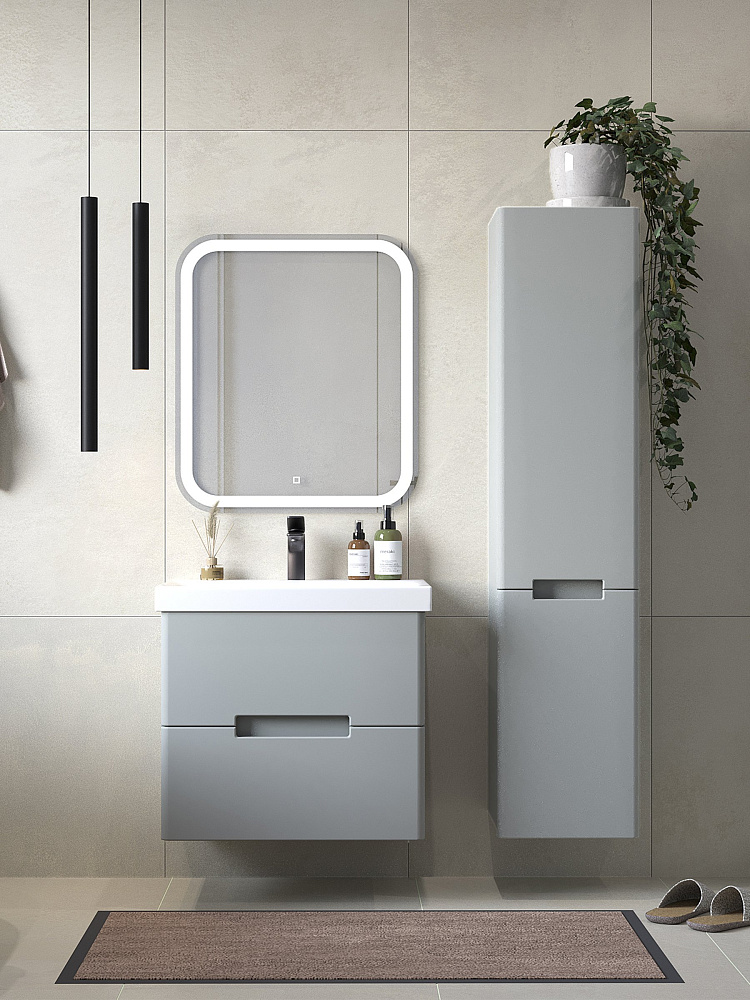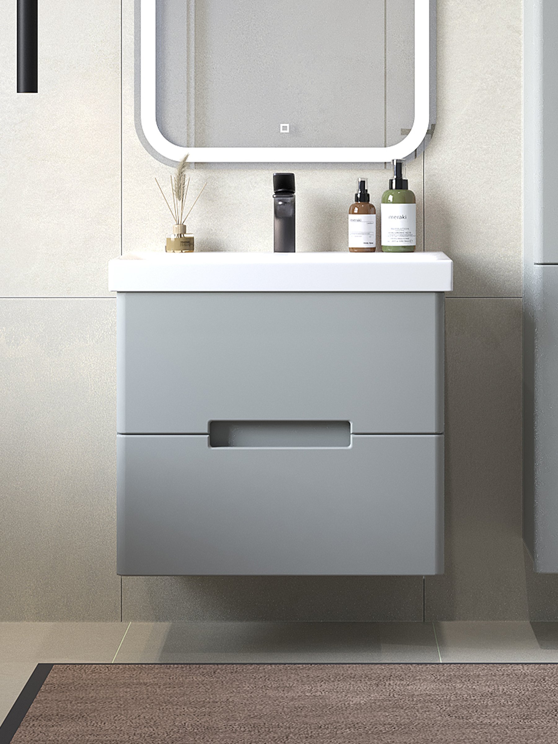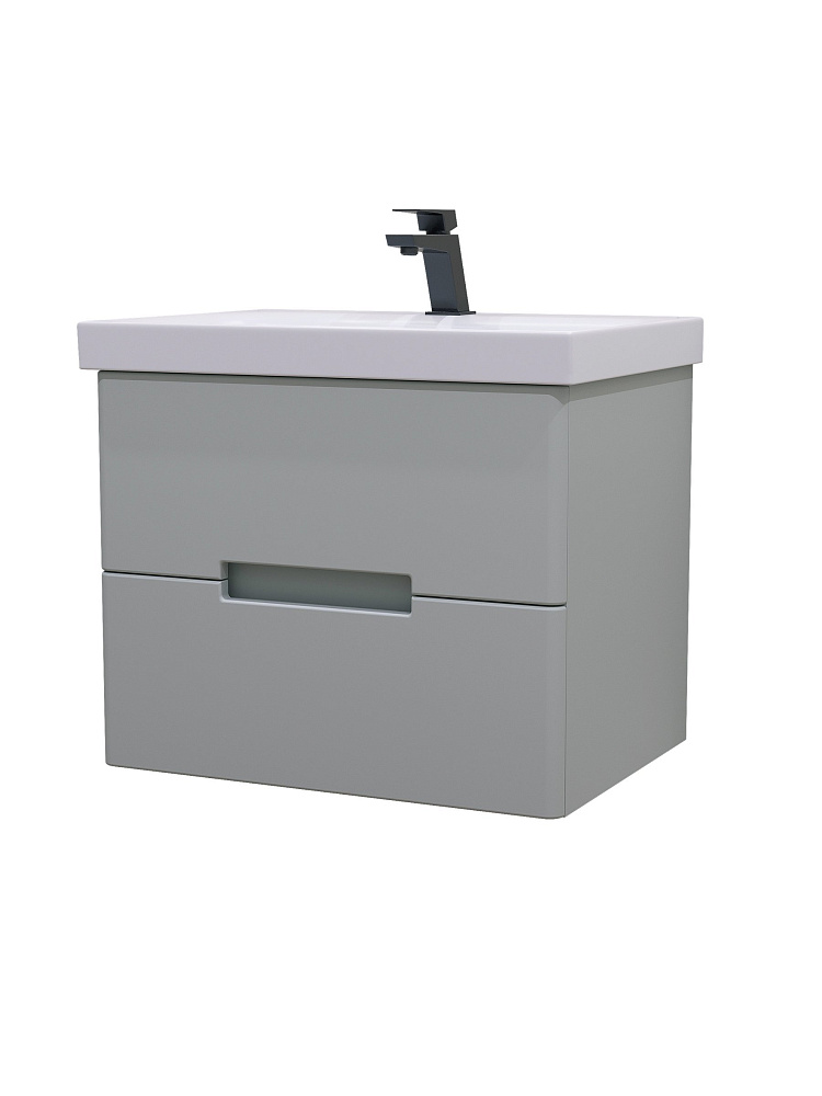 Тумба с раковиной SanStar Ориана 60 подвесная, серая, раковина Cersanit Moduo 60
