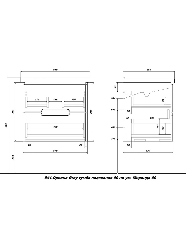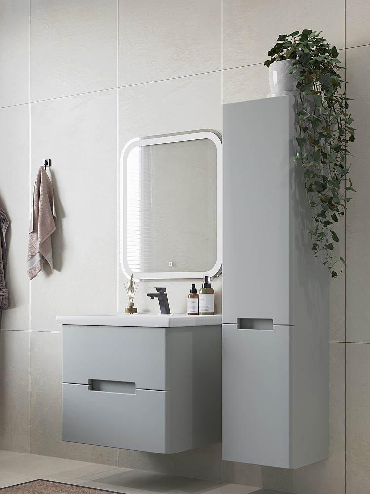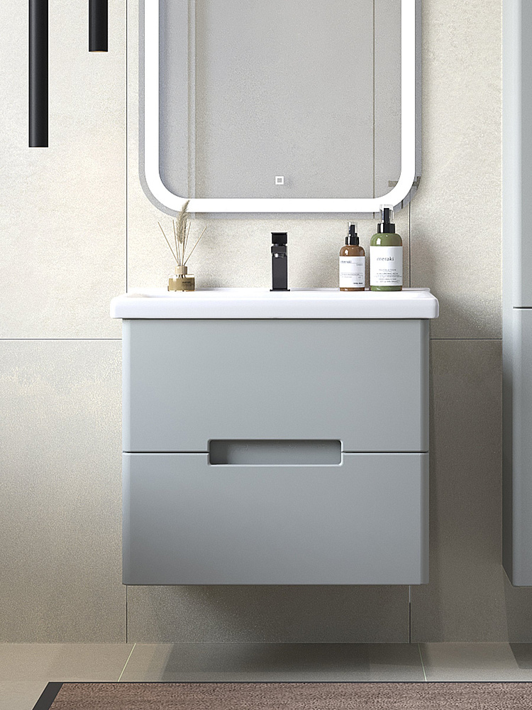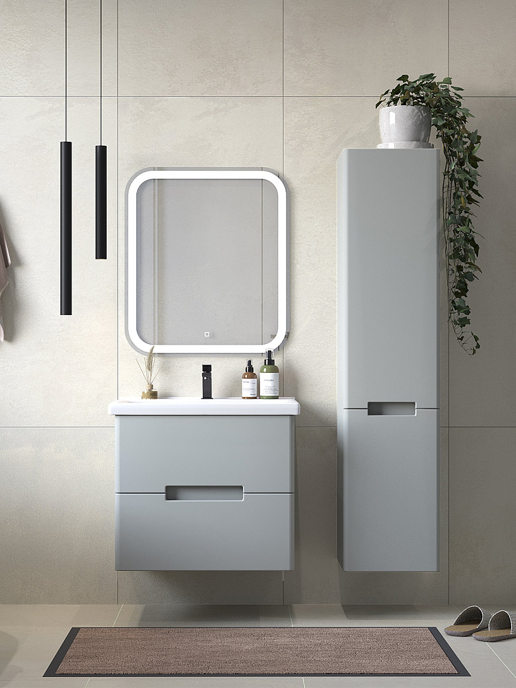 Тумба с раковиной SanStar Ориана 60 подвесная, серая, раковина Santek Миранда 60
