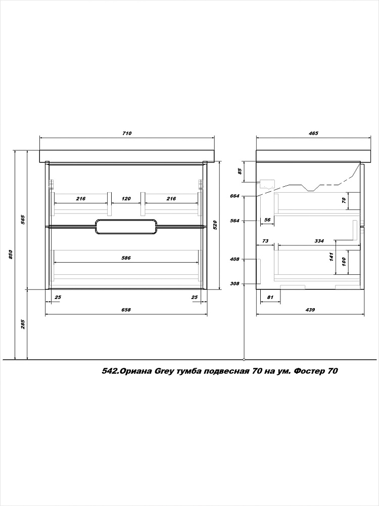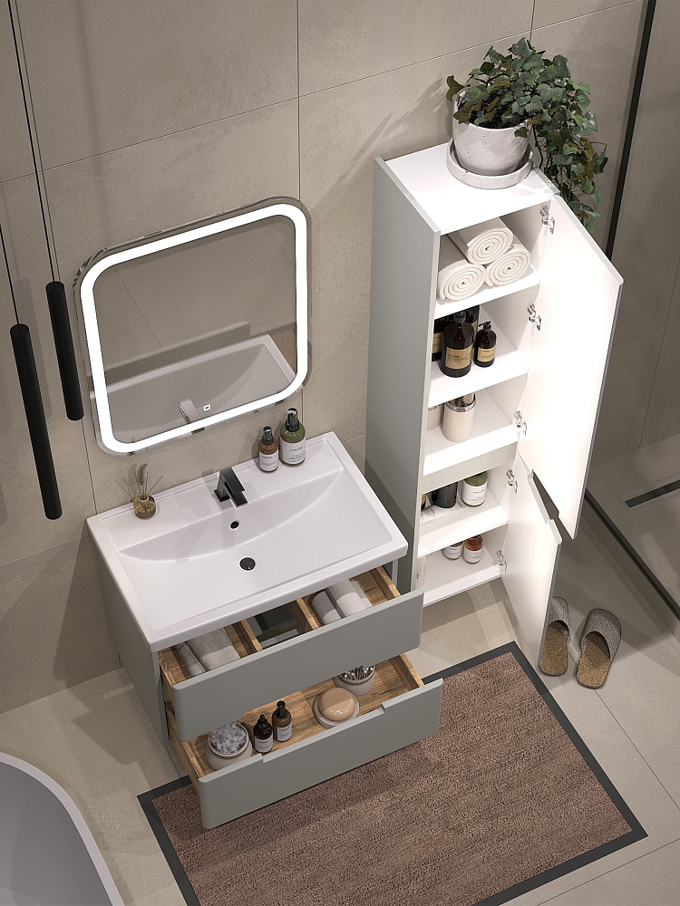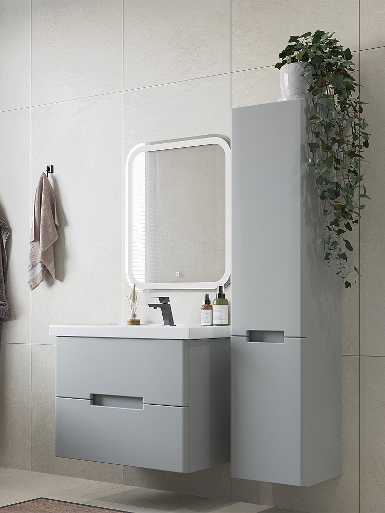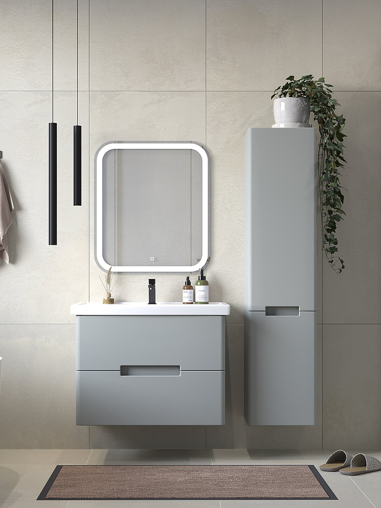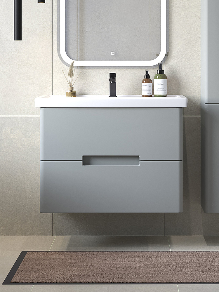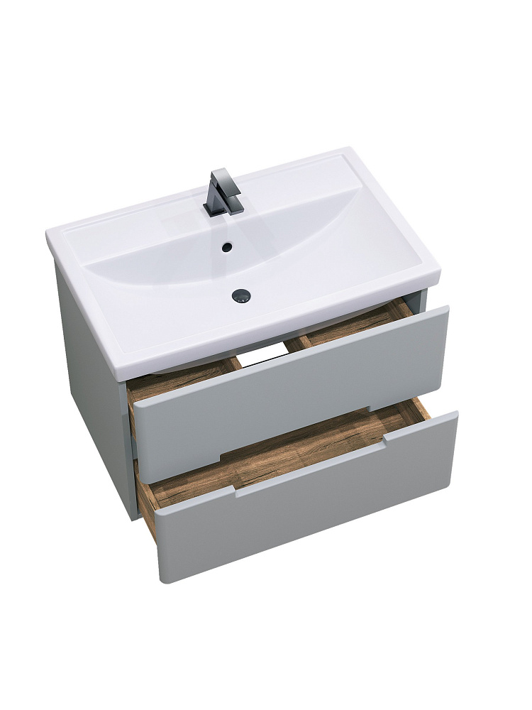 Тумба с раковиной SanStar Ориана 70 подвесная, серая, раковина Kirovit Фостер 70