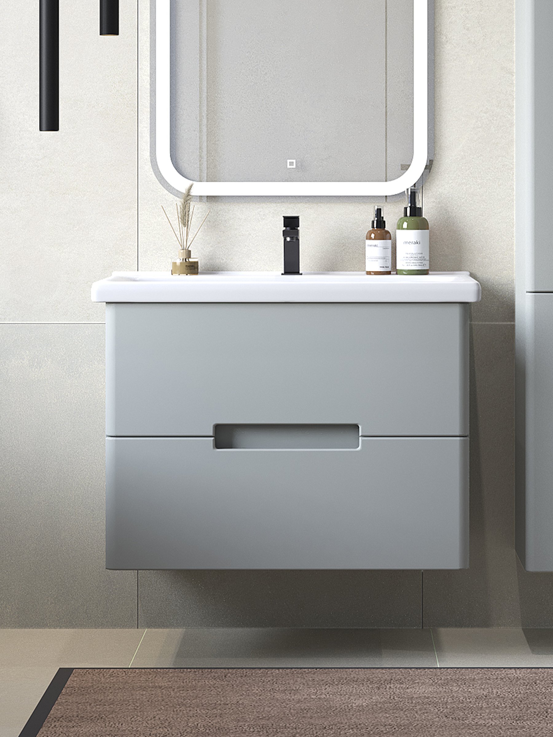 Отзывы о Тумба с раковиной SanStar Ориана 70 подвесная, серая, раковина Santek Миранда 70