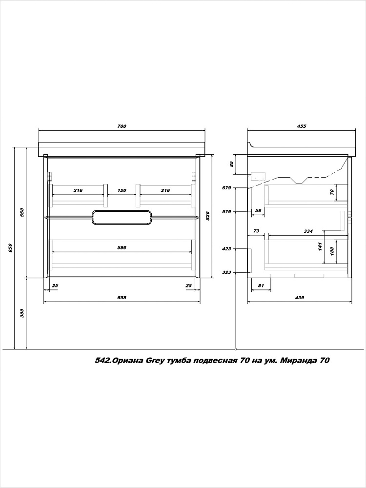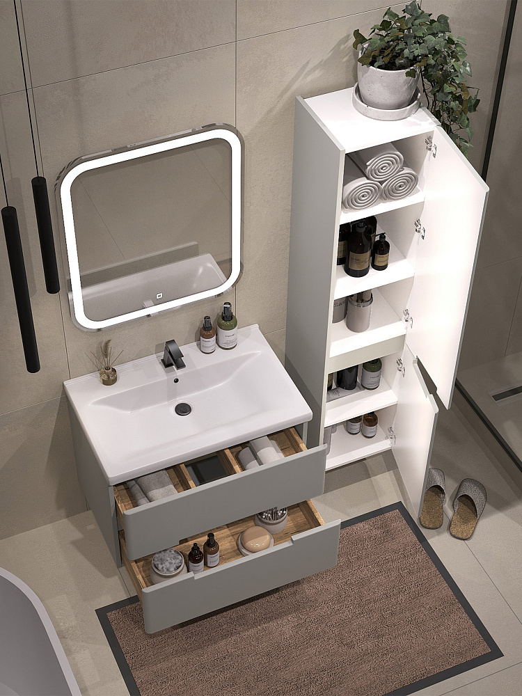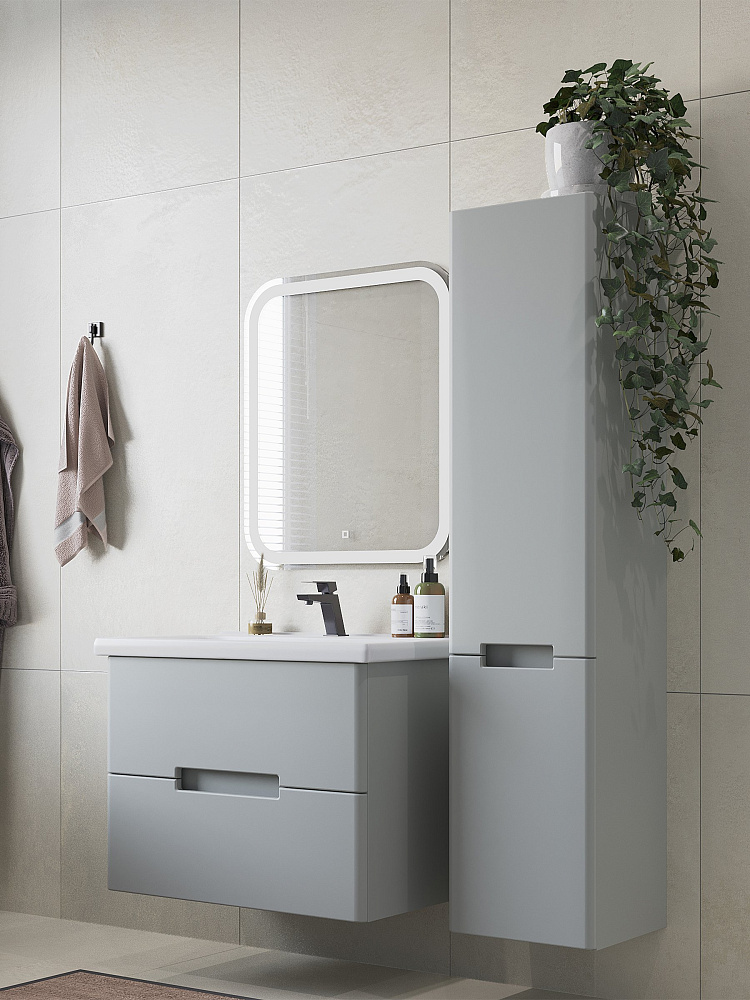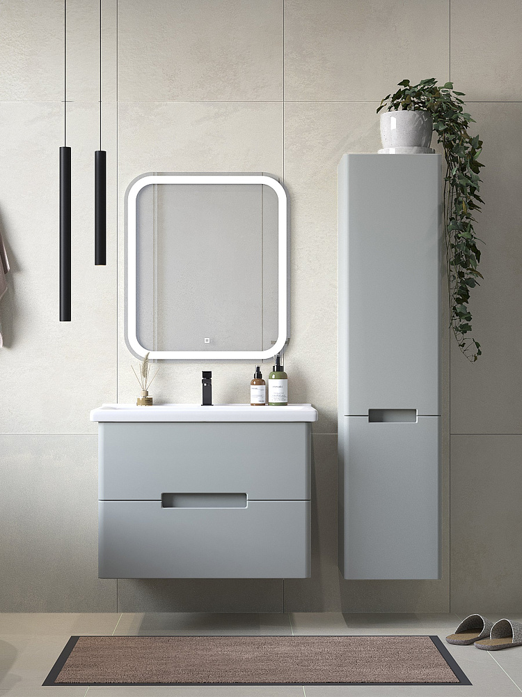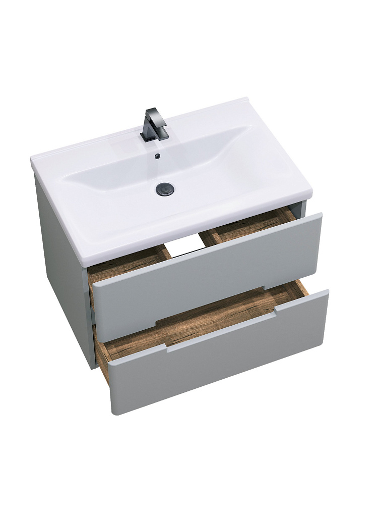 Тумба с раковиной SanStar Ориана 70 подвесная, серая, раковина Santek Миранда 70
