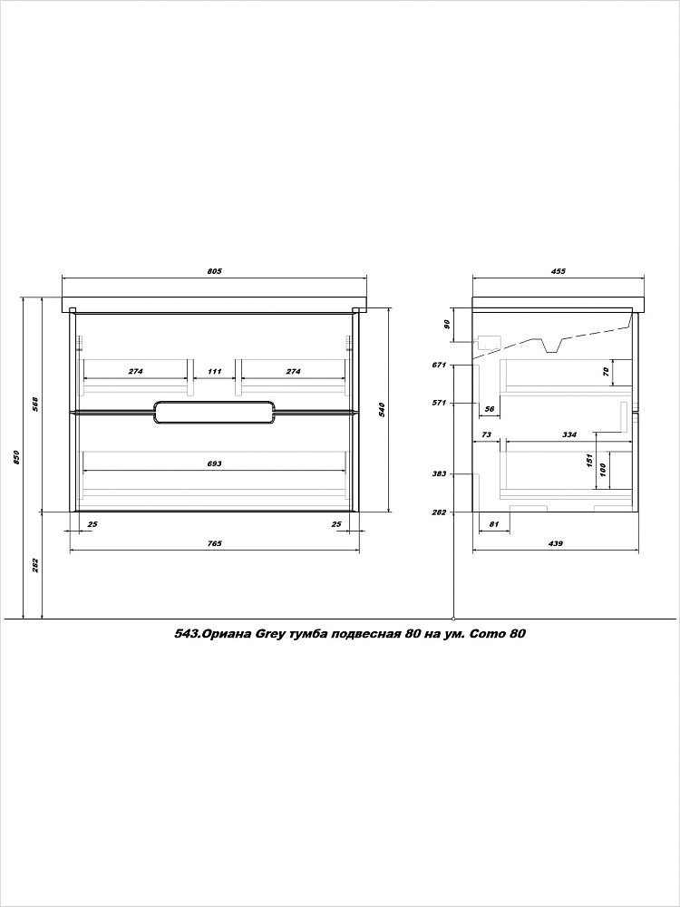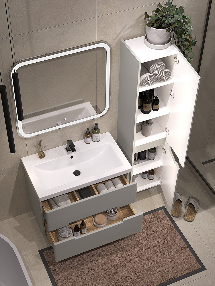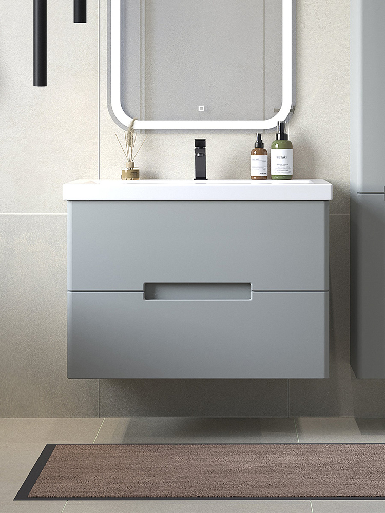 Тумба с раковиной SanStar Ориана 80 подвесная, серая, раковина Cersanit Como 80