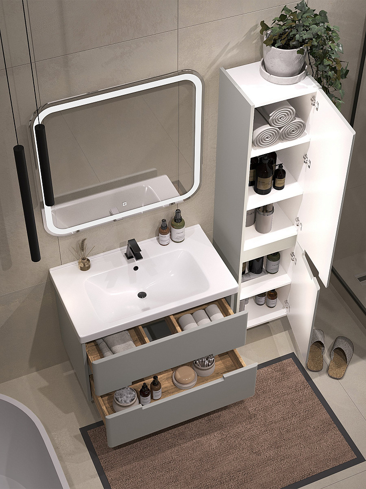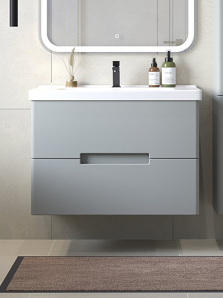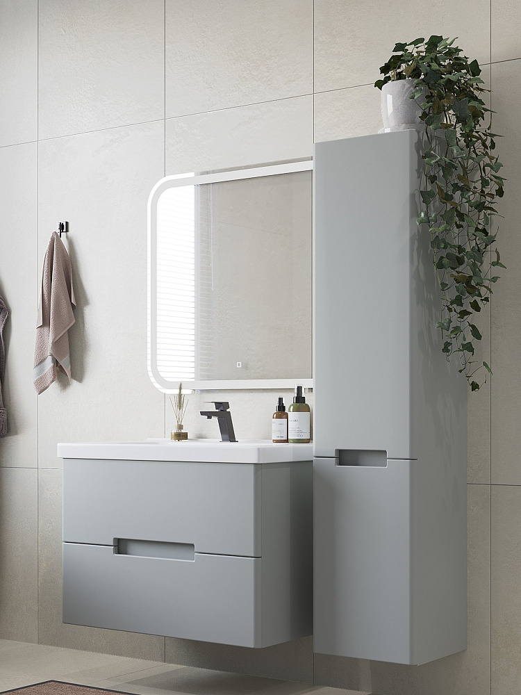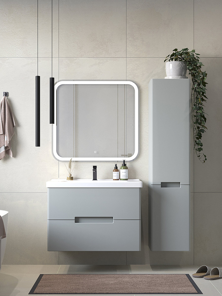Тумба с раковиной SanStar Ориана 80 подвесная, серая, раковина Dreja Harmony 80