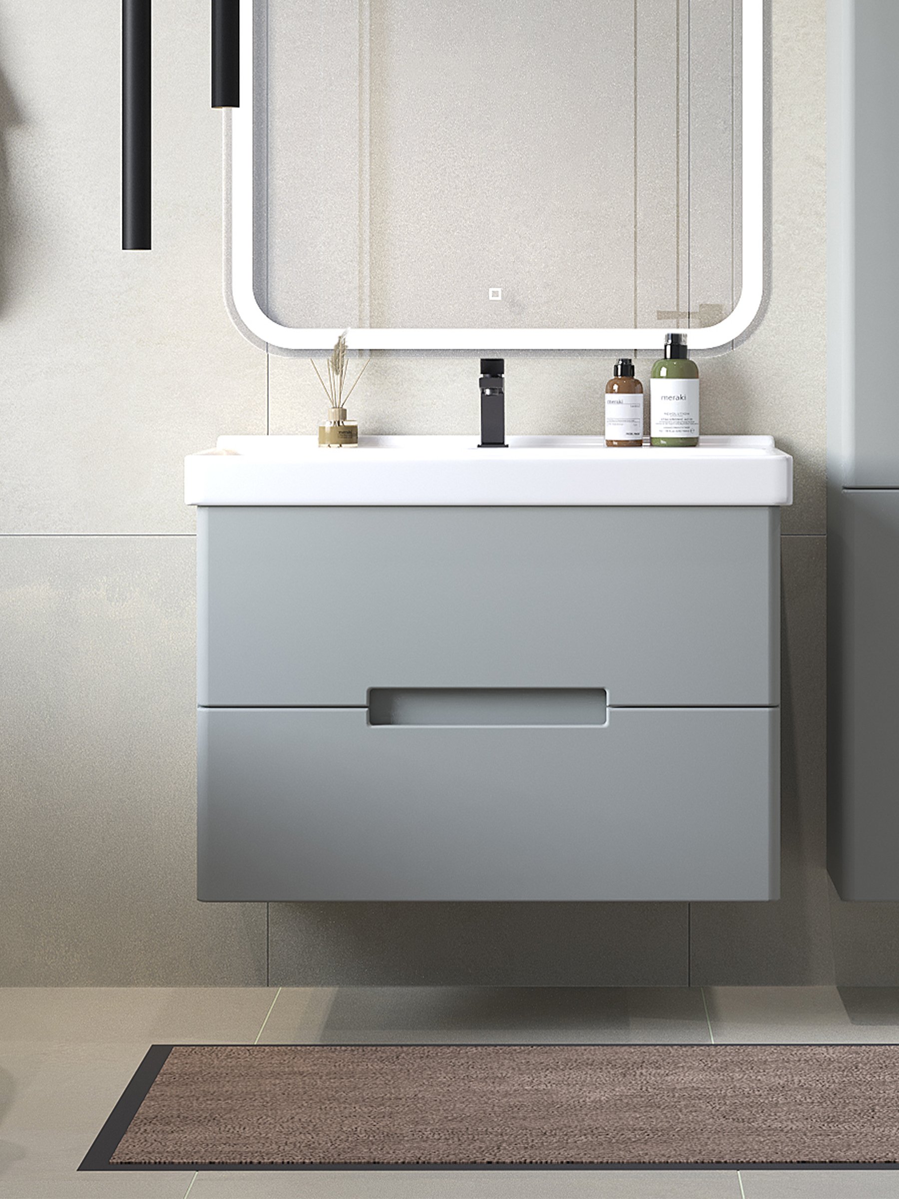Отзывы о Тумба с раковиной SanStar Ориана 80 подвесная, серая, раковина Sanita luxe Fest 80