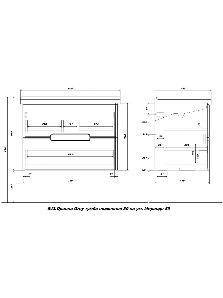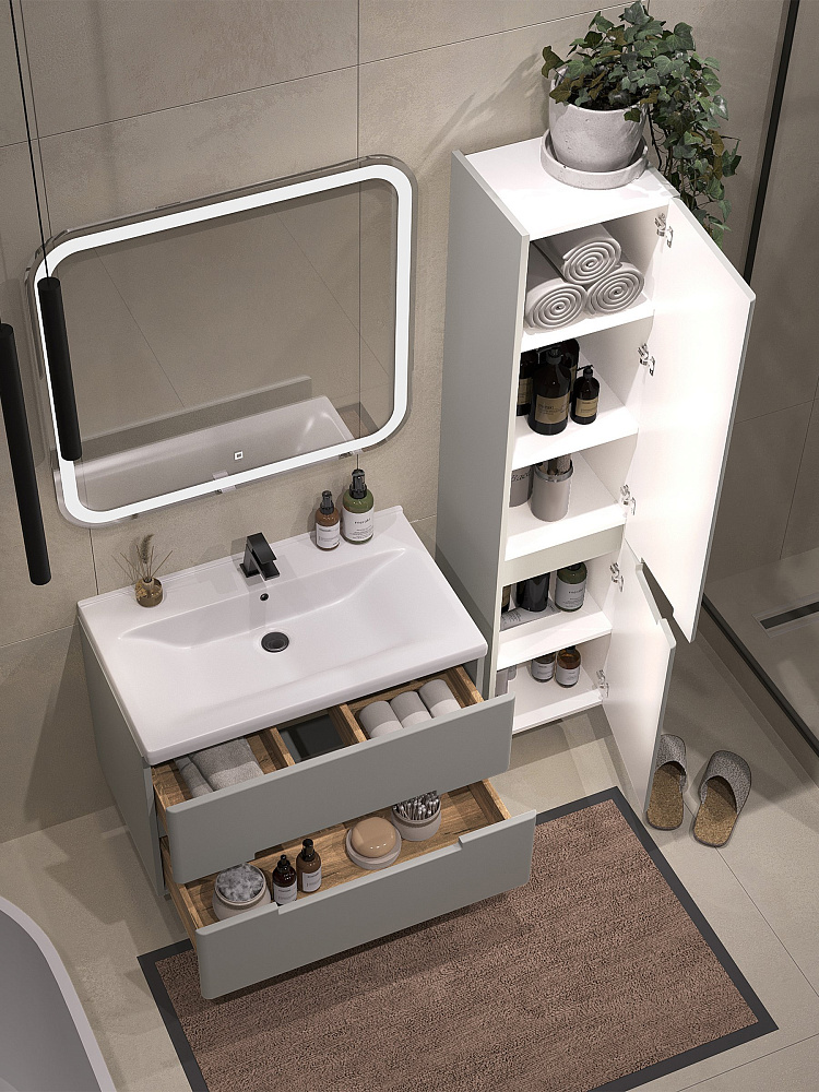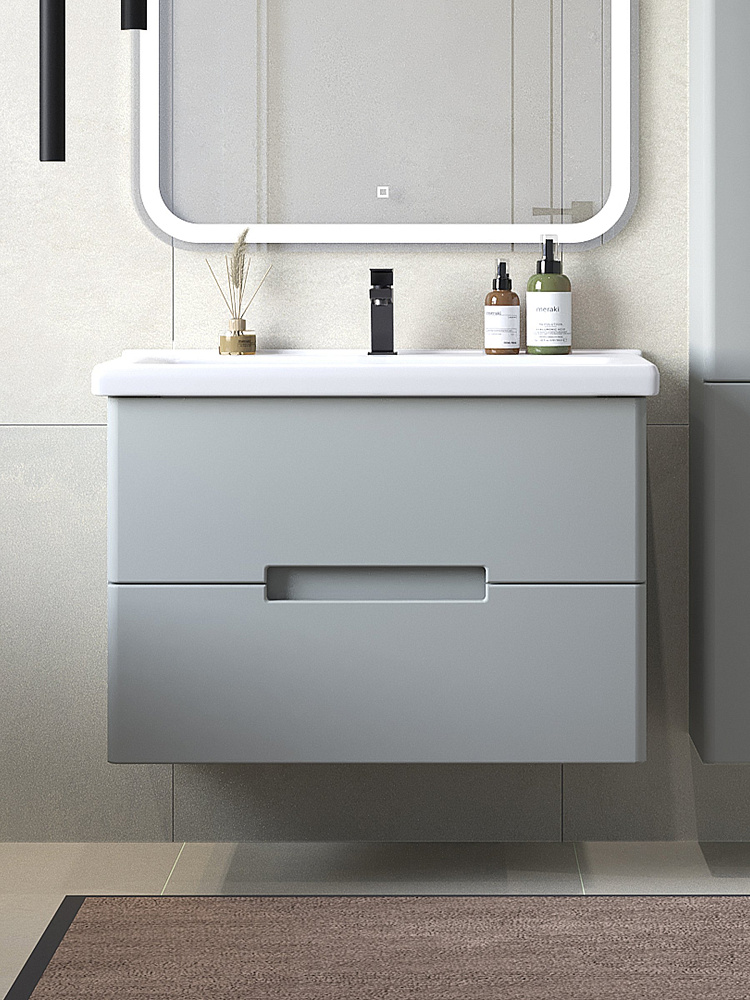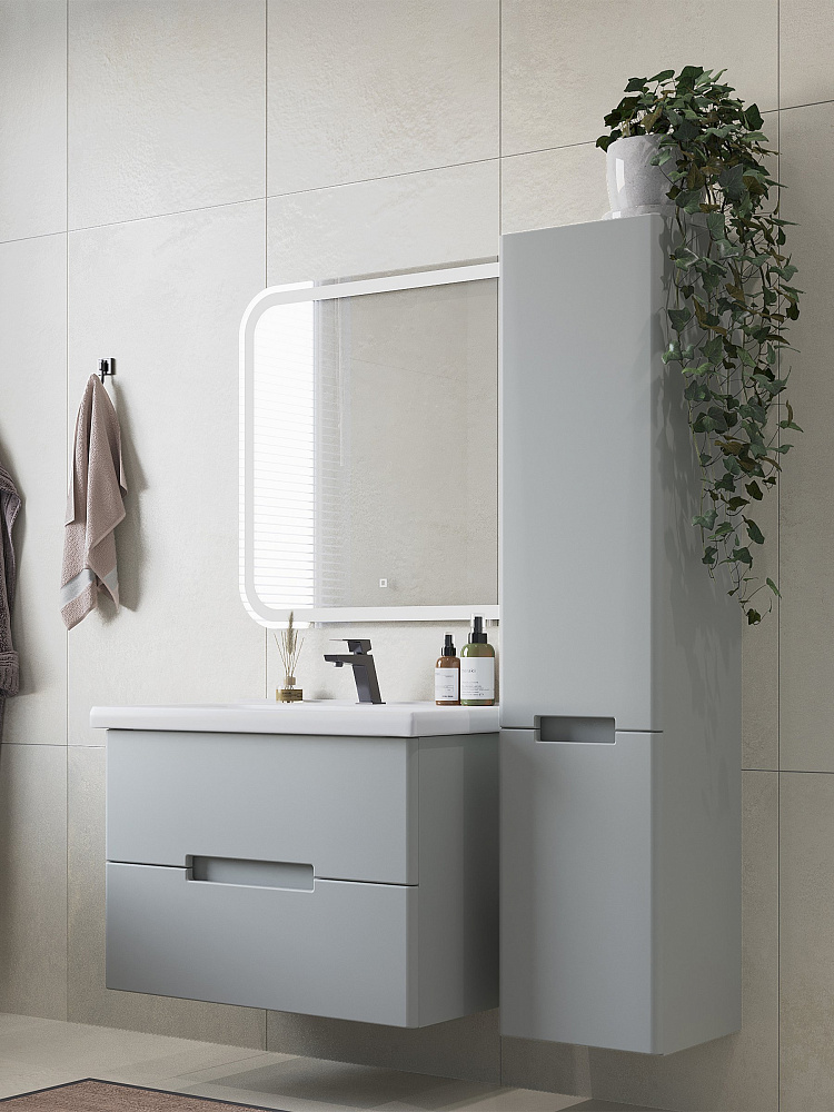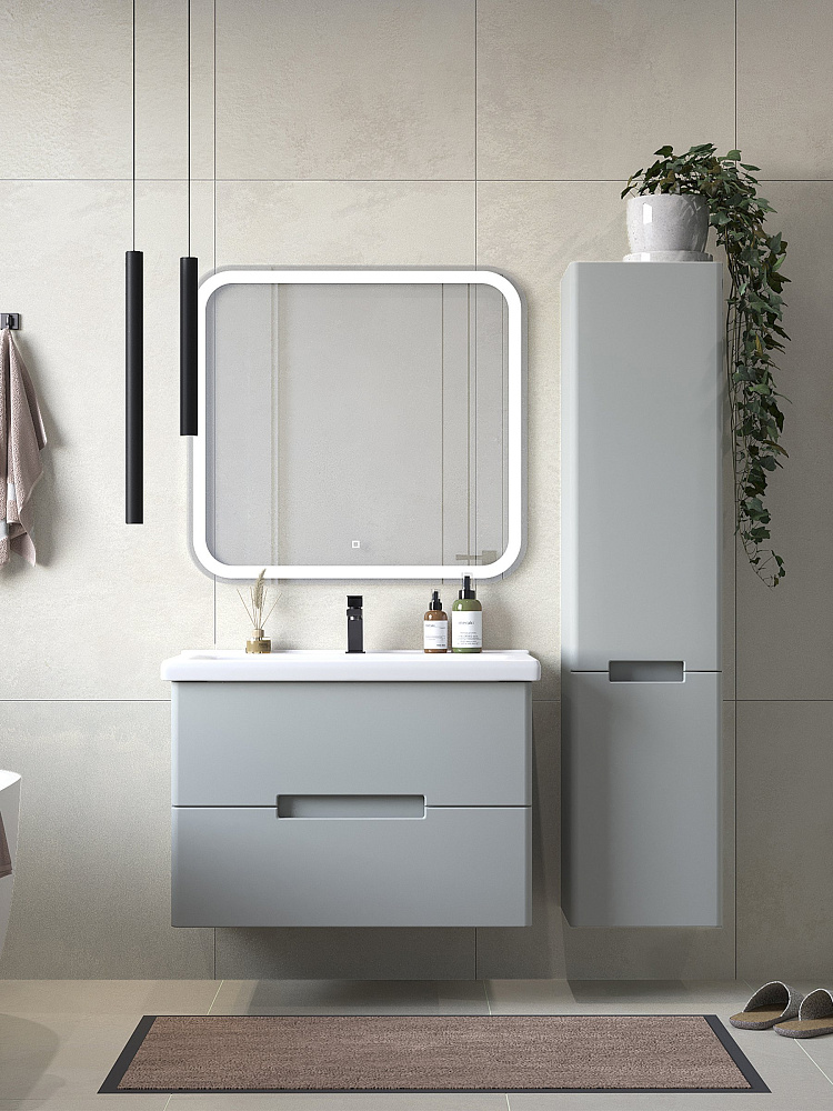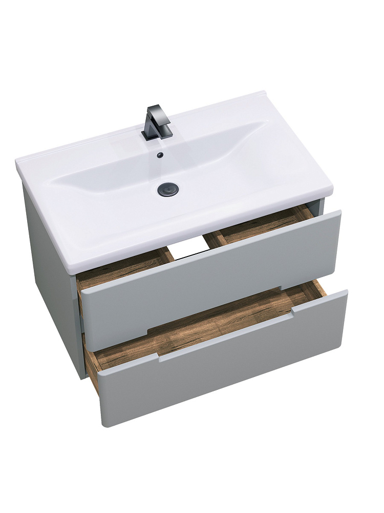 Тумба с раковиной SanStar Ориана 80 подвесная, серая, раковина Santek Миранда 80