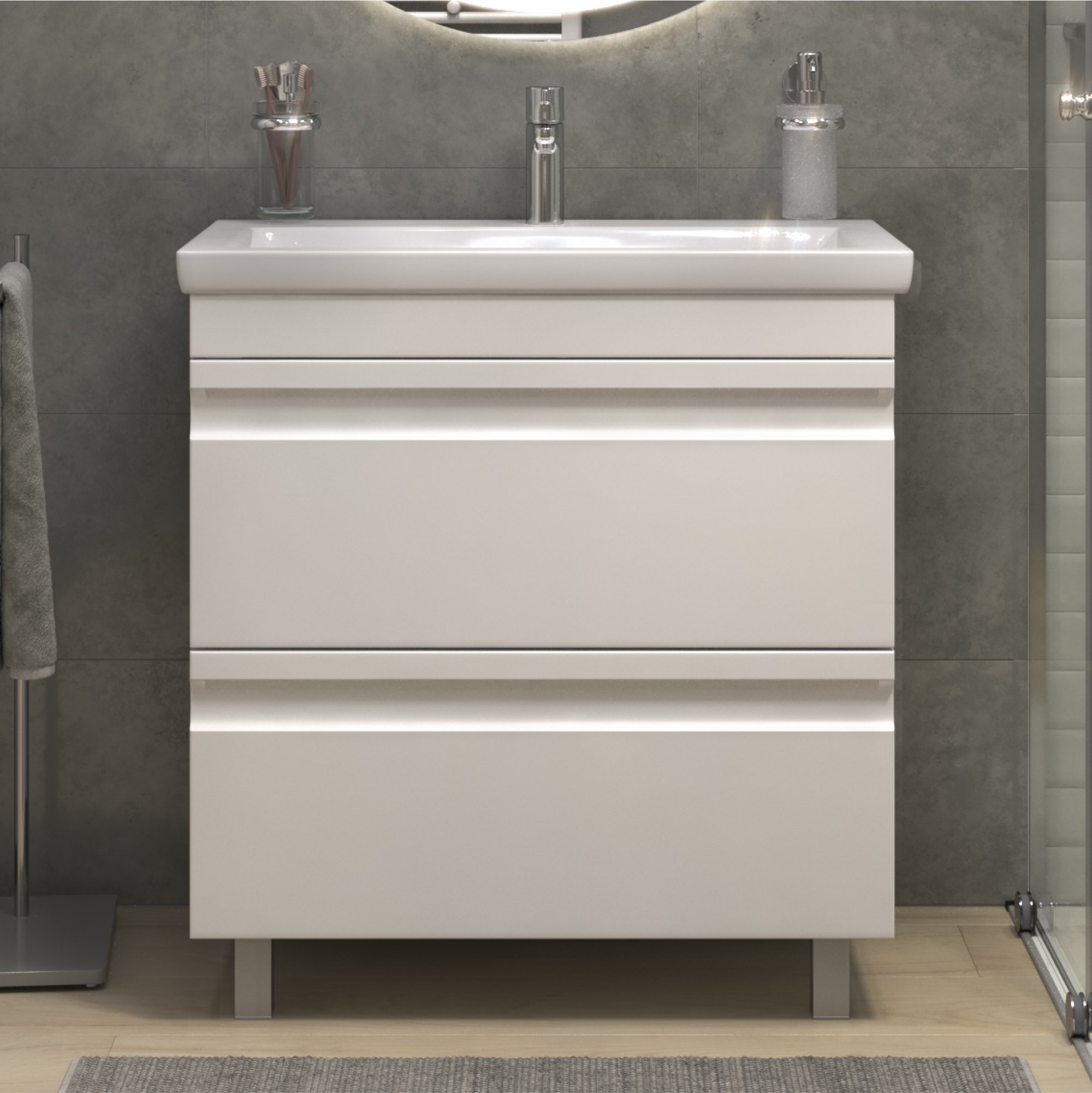 Тумба с раковиной Vigo Holly 80 напольная, белая, раковина Como 80