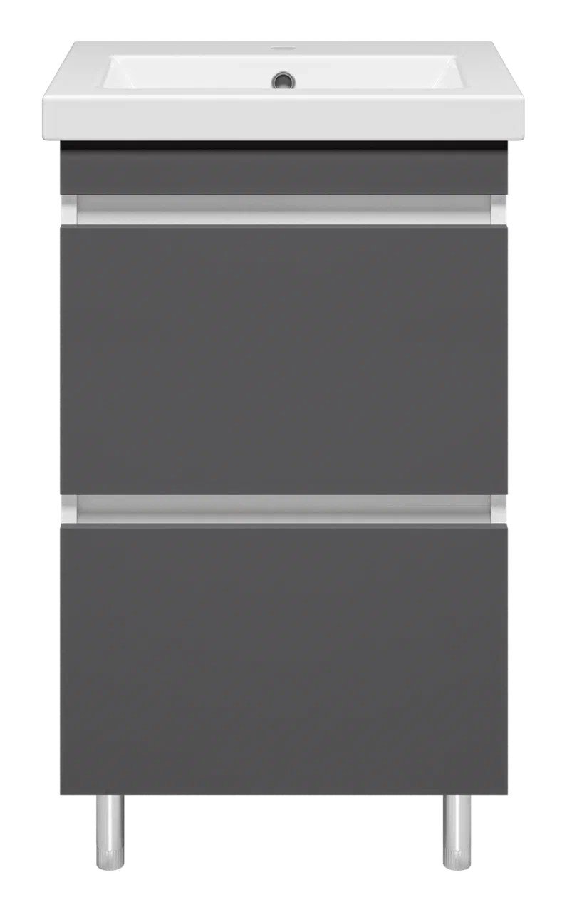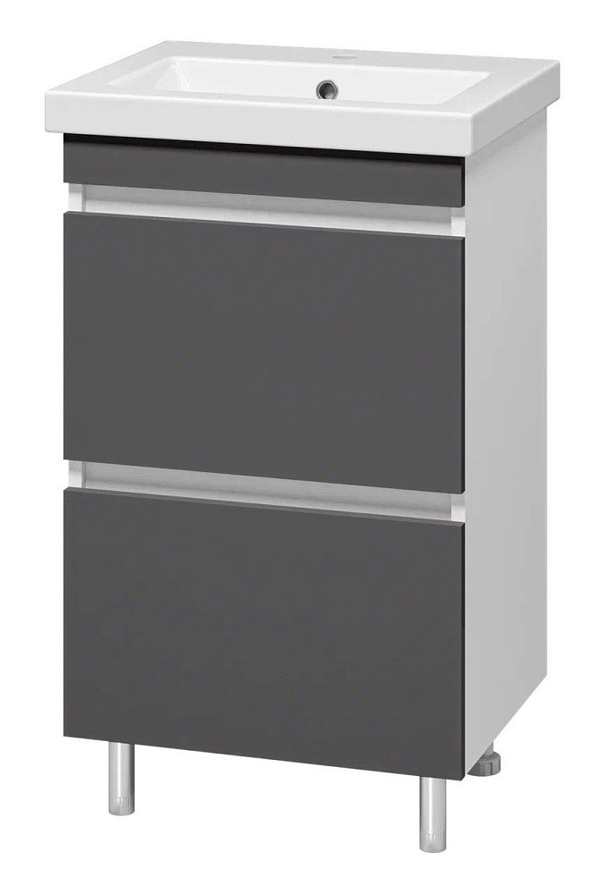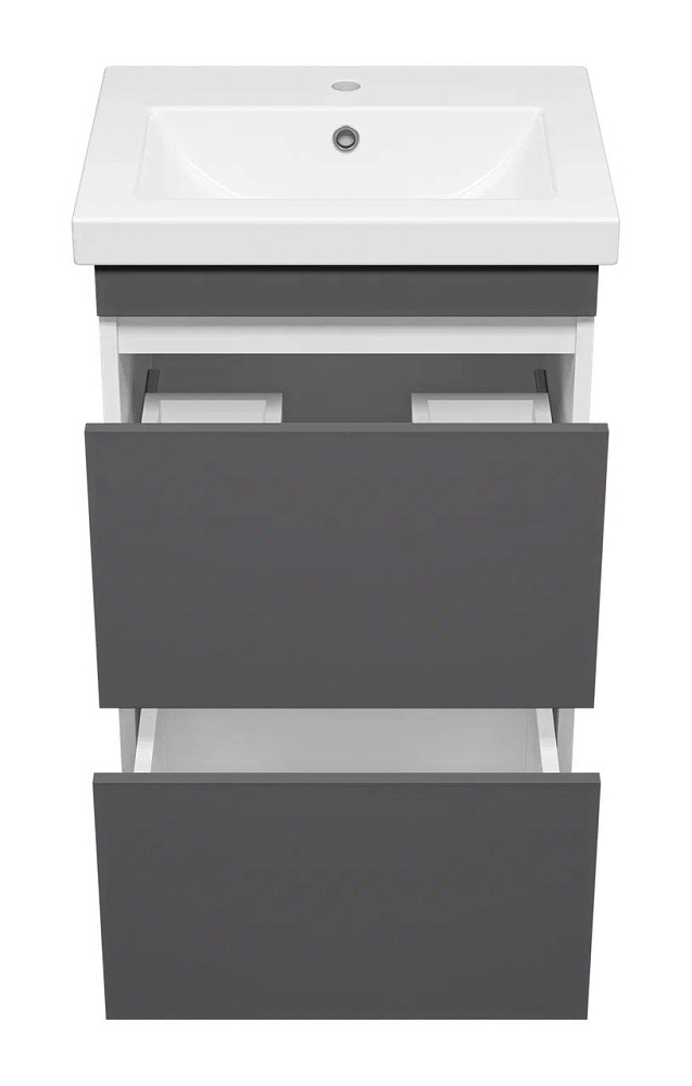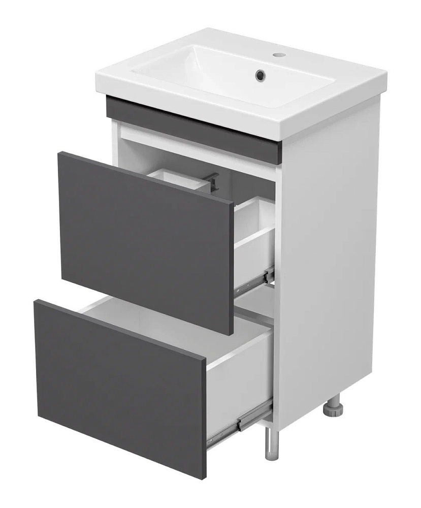 Тумба с умывальником Misty Майна - 50 графит, белая напольная 2 ящика