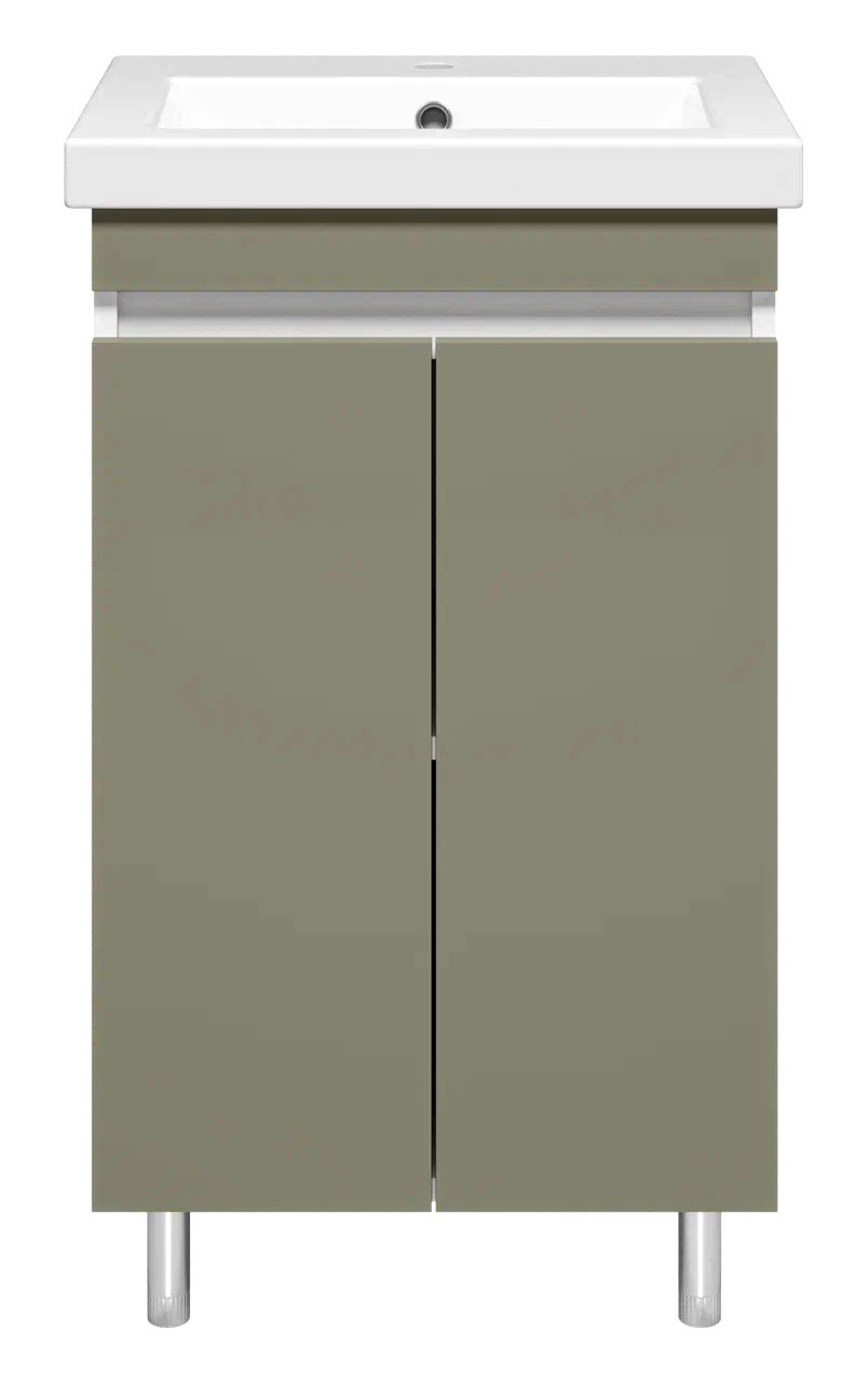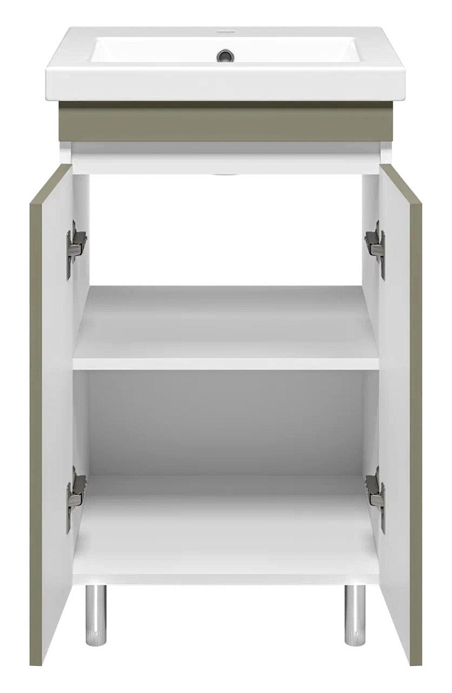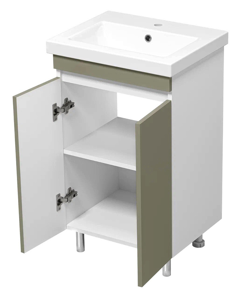 Тумба с умывальником Misty Майна - 50 хаки,белая напольная 2 дверцы