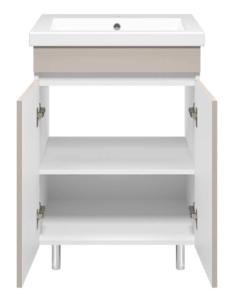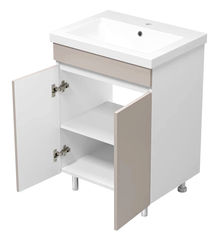Тумба с умывальником Misty Майна - 60 сливки,белая напольная 2 дверцы