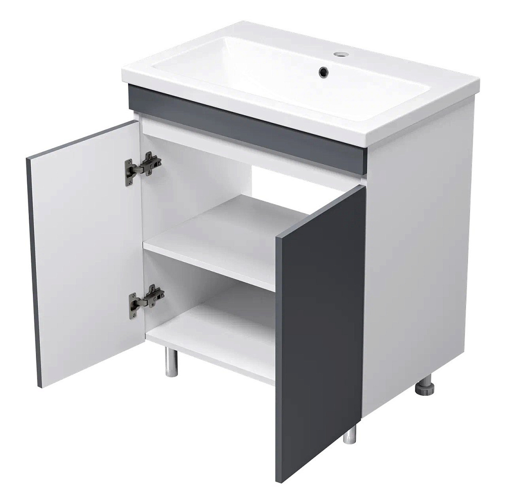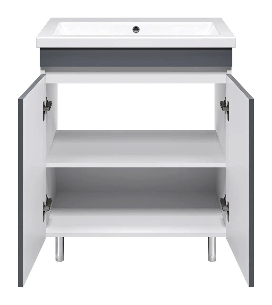 Тумба с умывальником Misty Майна - 70 графит,белая напольная 2 дверцы