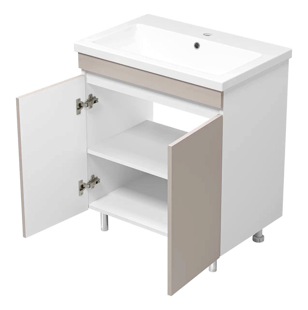 Тумба с умывальником Misty Майна - 70 сливки,белая напольная 2 дверцы
