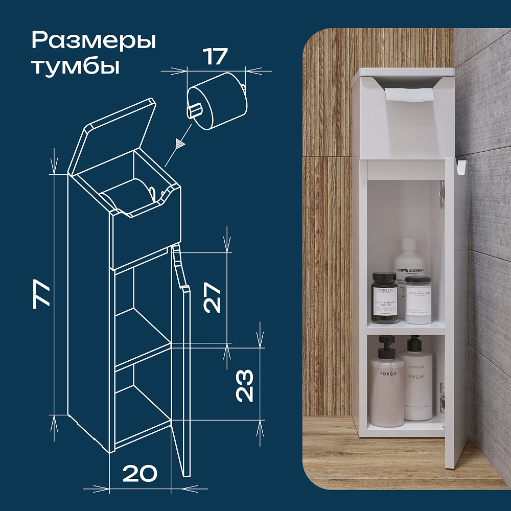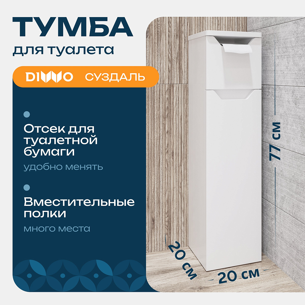 Тумба в туалет DIWO Суздаль 20x77x20 напольная, белая, с держателем туалетной бумаги
